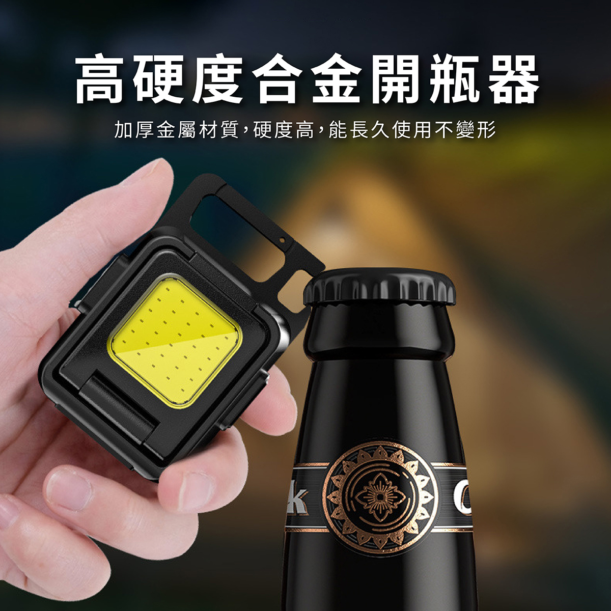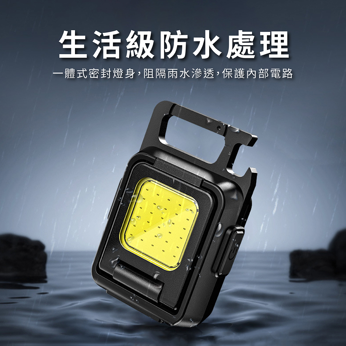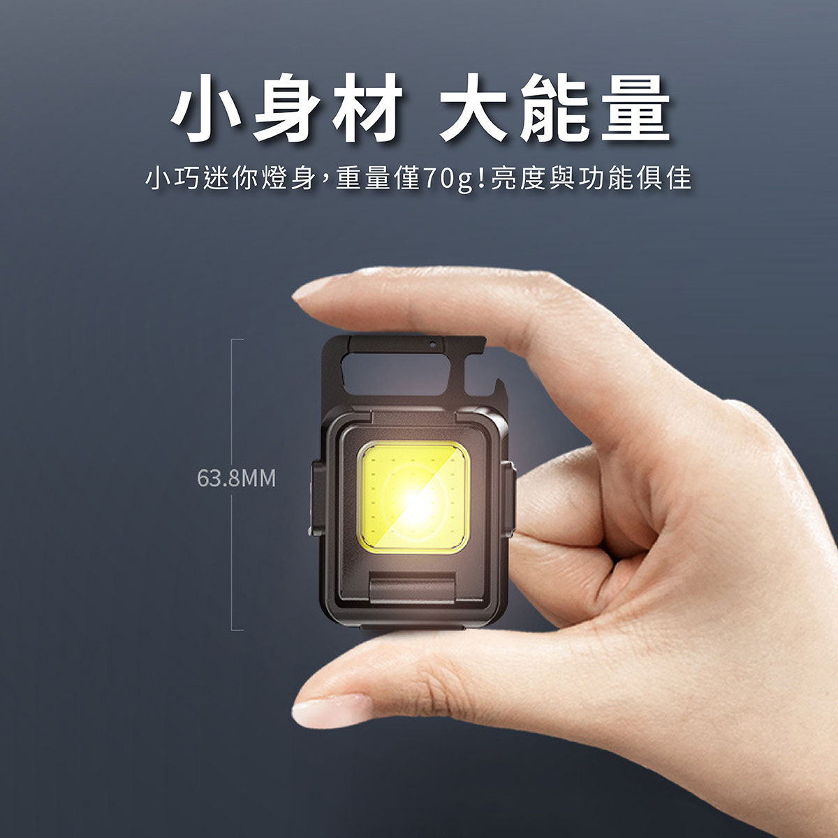 COB掛扣照明燈擁有小巧迷你設計,重量僅70g,四段式照明模式,操作簡單,一鍵切換,提供左燈、右燈、全亮和爆閃模式。內建掛扣設計,能輕鬆掛在鑰匙或背包上,隨身攜帶。90°可調式雙面COB面板,提供全方位高亮照明,適合露營、夜間戶外活動和日常使用。提供單面與雙面兩種版本,滿足不同照明需求。