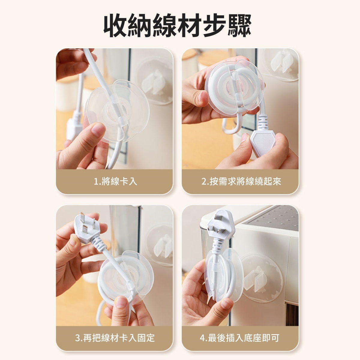電線收納繞線器,專為家電電線整理設計,讓您的廚房、客廳、辦公空間不再被凌亂線材困擾。免打孔設計搭配無痕黏貼,安裝快速又不傷表面,適用於各類小家電如吹風機、電鍋、咖啡機等。PP材質輕巧耐用,承重力達1KG,穩固不易掉落,讓您輕鬆收納、安心使用。從此擺脫電線纏繞,維持空間整潔美觀,是居家與辦公環境不可或缺的收納好幫手。