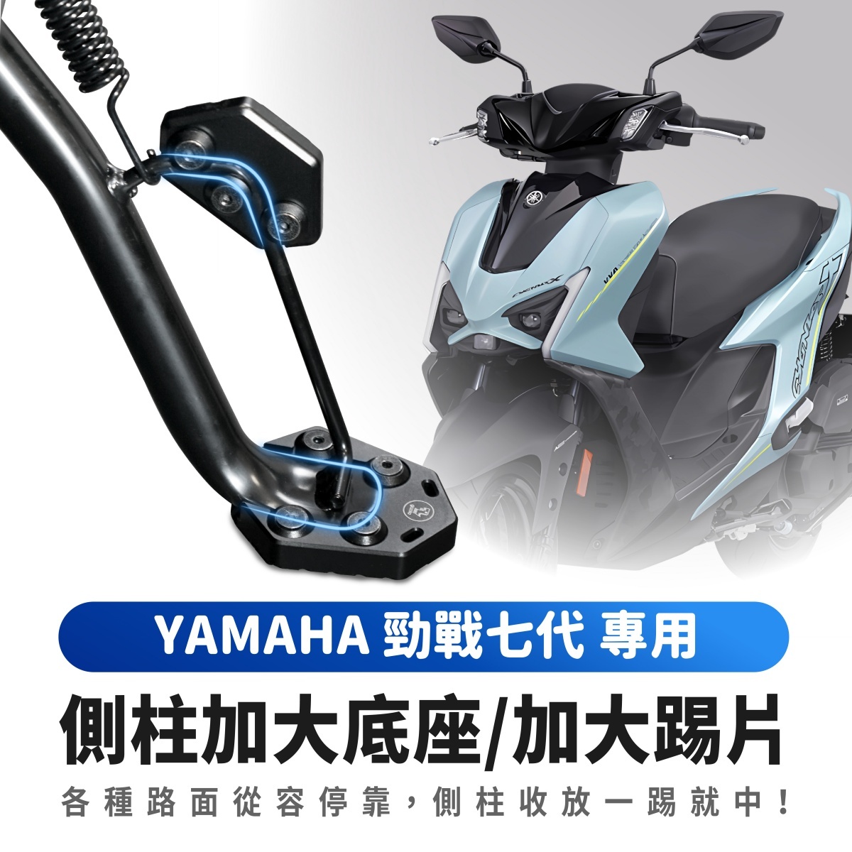 🥇沿用 YAMAHA 勁戰七代 車身線條,完美搭配原車身整體造型,側柱一踢!帥氣襲來~