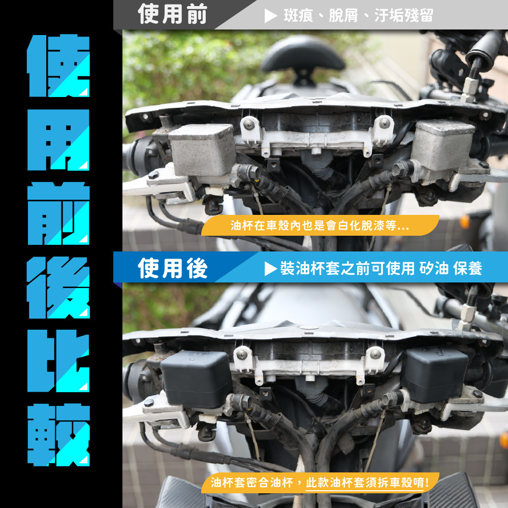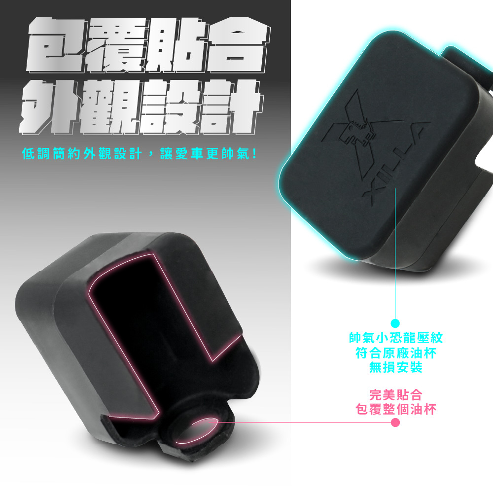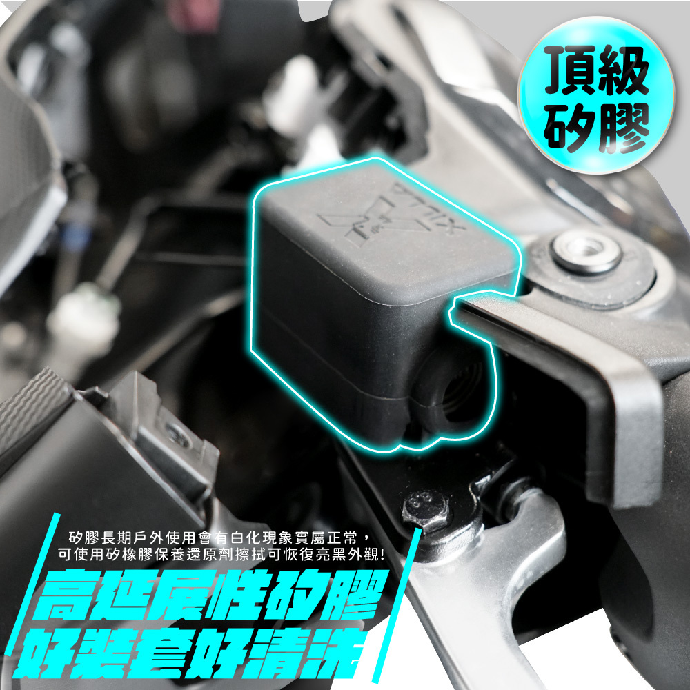 採用高彈性矽膠材質製成,耐熱耐候、不易老化,完整包覆煞車油杯,有效防止日曬雨淋、刮傷與氧化問題。可降低油杯長期曝露造成的龜裂、變色與髒污,延長使用壽命,同時提升整體外觀質感。安裝簡單免工具,直接套上即可使用,是日常通勤與愛車保養不可或缺的實用小配件。