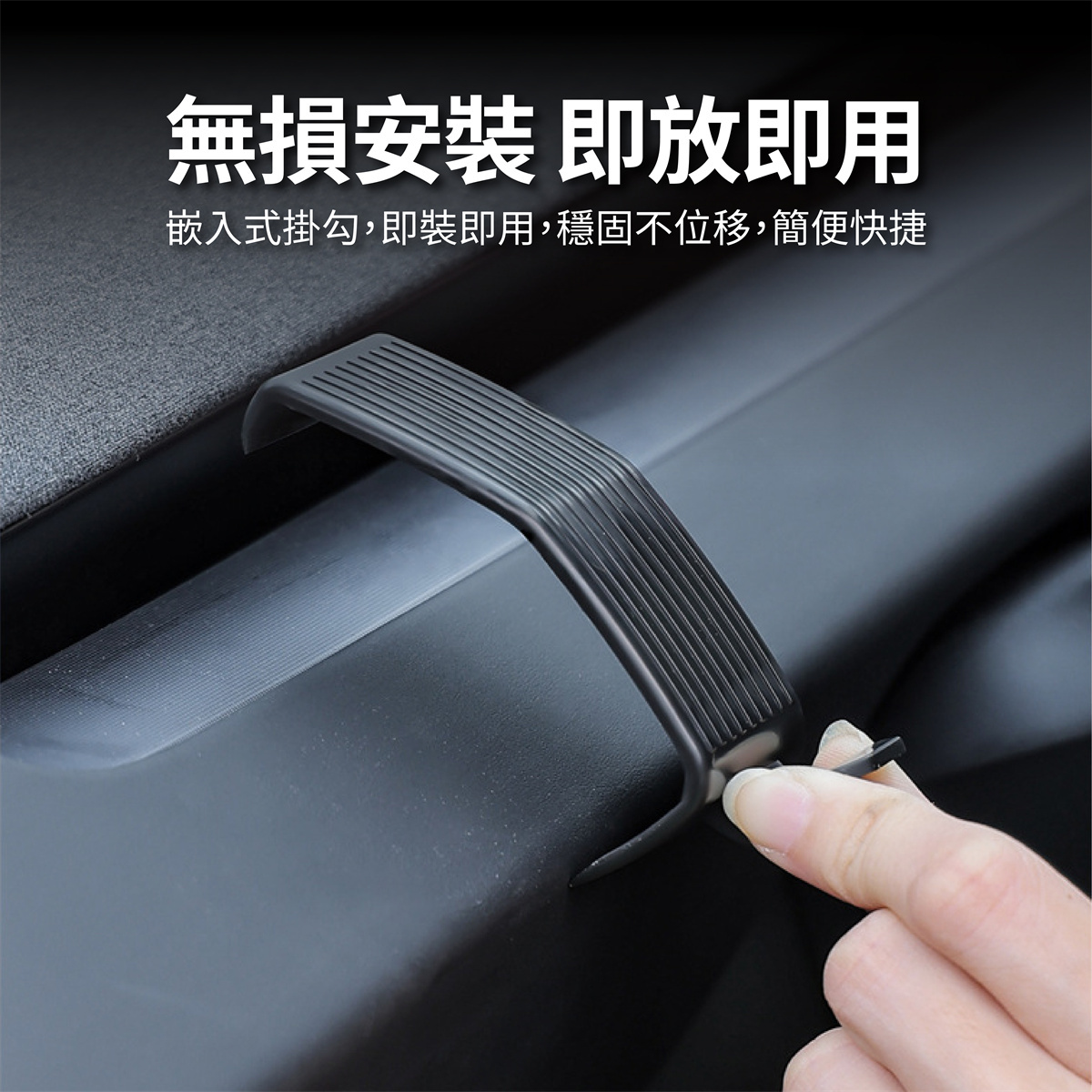 儀表台掛勾/手機支架專為特斯拉Model 3/煥新3設計,具備優質ABS工程級塑膠材質,耐用且承重力強。無論是放置手機或吊掛袋子、帽子、鑰匙等小物,皆可輕鬆完成。嵌入式掛勾設計不僅無損安裝,還能避免對愛車造成損傷。小巧且不佔空間的設計,更能避免擋住行車視線,確保駕駛安全。此外,手機架自動鎖緊回彈設計,即使單手操作也能輕鬆使用。