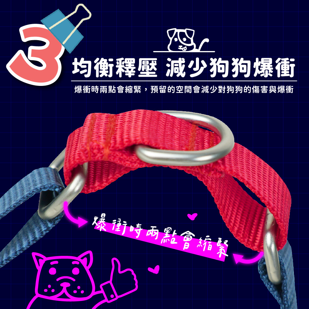🏆提升安全性:防爆衝的設計能夠有效減少愛犬在激烈活動或應對突發情況時出現的傷害,這樣的設計有助於增強牽引時的穩定性,避免狗狗突然衝出去造成拉扯過大或脫落。