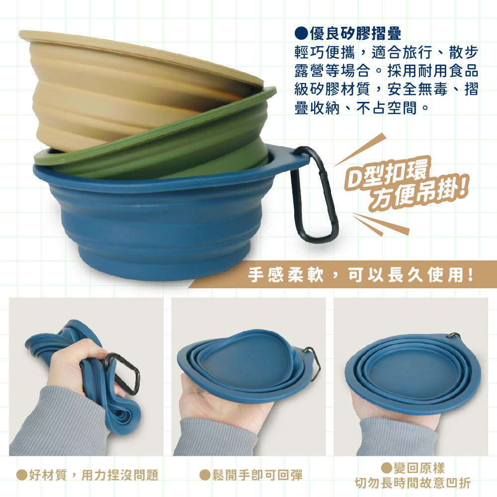 🏆 輕巧便攜:可折疊設計讓碗變得扁平,方便收納於背包、口袋或掛在牽繩上,不佔空間。