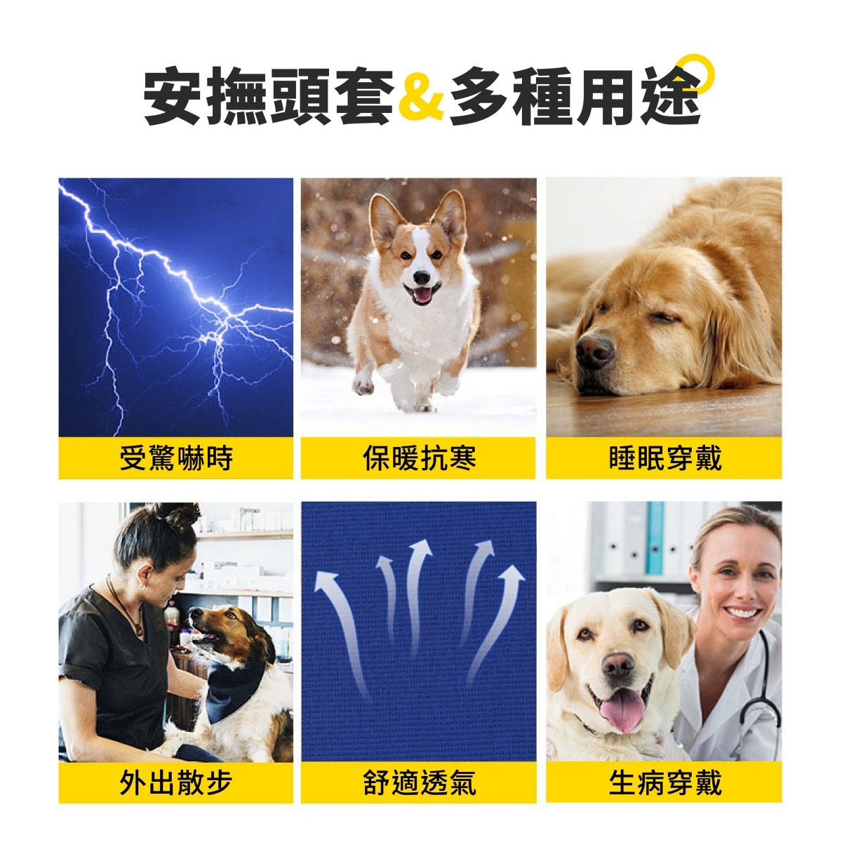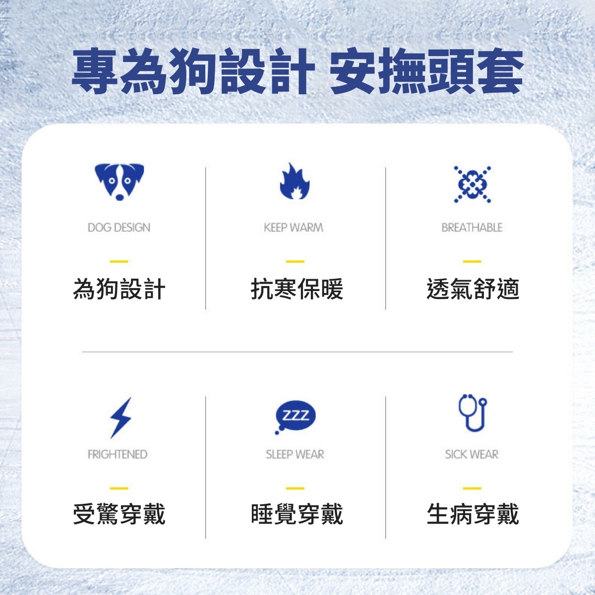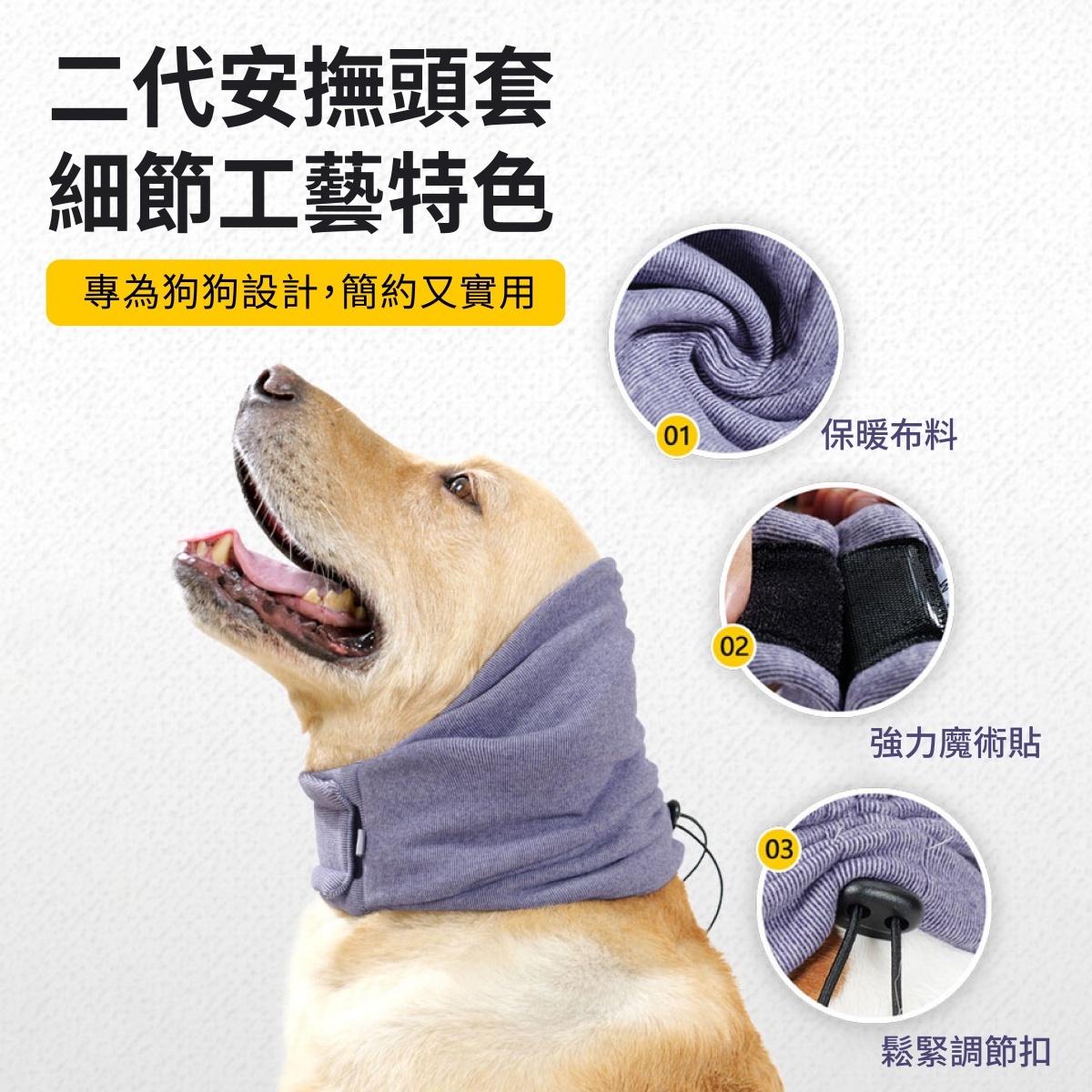 犬用保暖安撫頭套,專為狗狗設計,提供溫暖舒適的頭部與頸部保護,讓您的愛犬在寒冷天氣中也能保持溫暖。採用高彈布料製成,柔軟貼合,不僅舒適透氣、不易悶熱,還能有效降低外界噪音,幫助舒緩狗狗因環境變化或突發聲音而產生的焦慮感。此頭套能完整包覆狗狗的頭部、耳朵與脖子,防止狗狗因寒風刺激而感到不適,並減少抓咬帶來的刺激。適合冬季保暖、雷雨天安撫、車程途中減少緊張,讓您的毛孩擁有更安心自在的生活體驗。