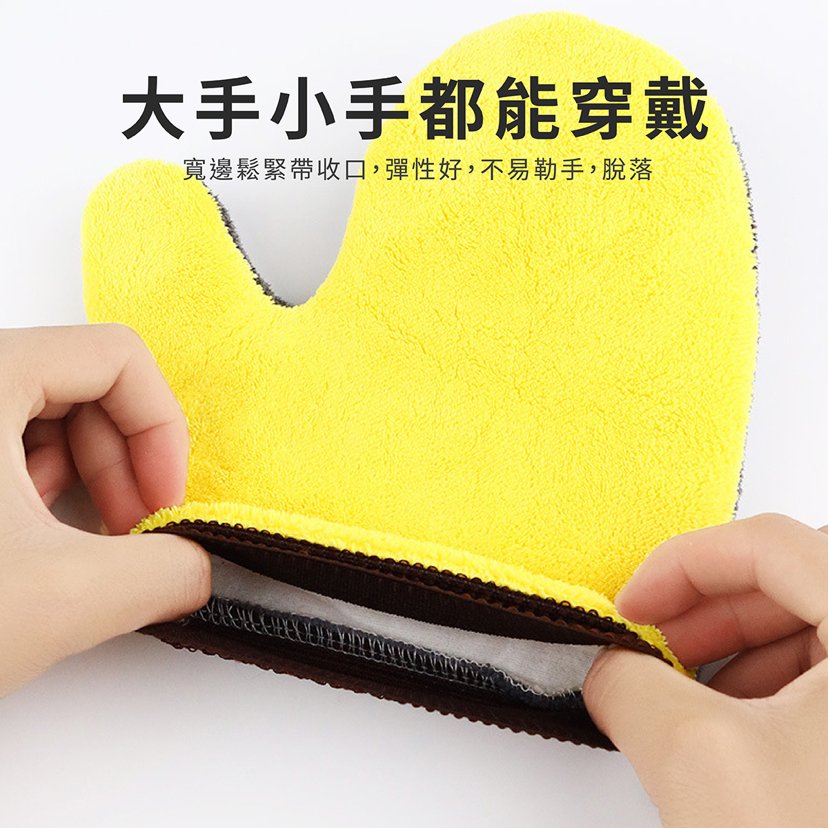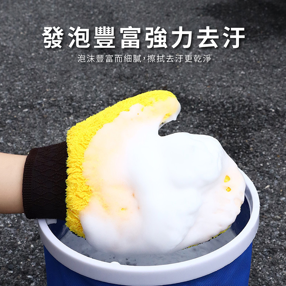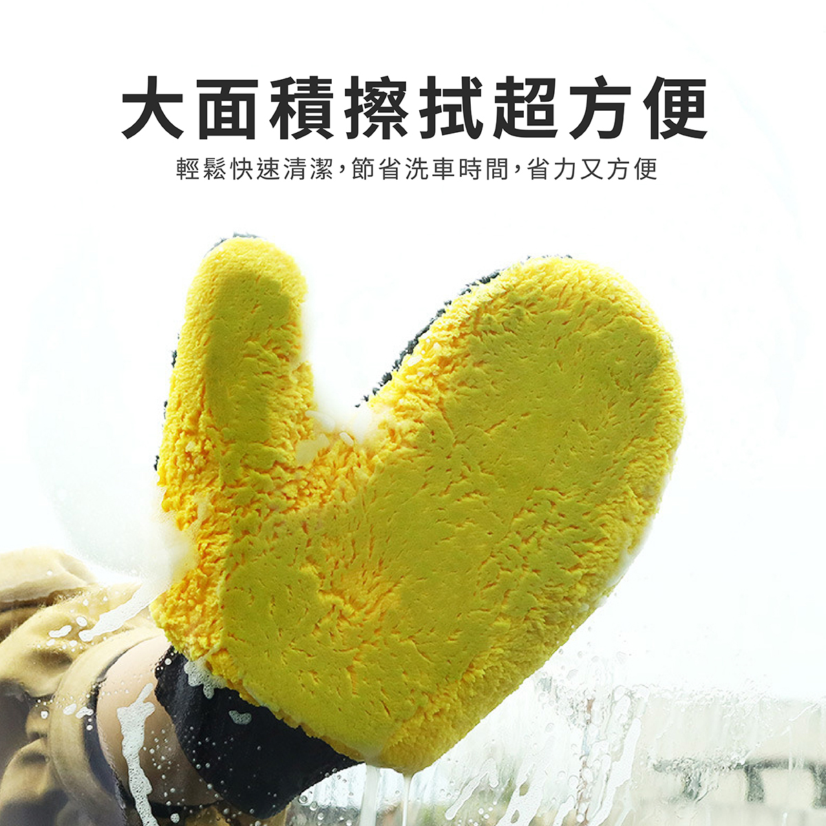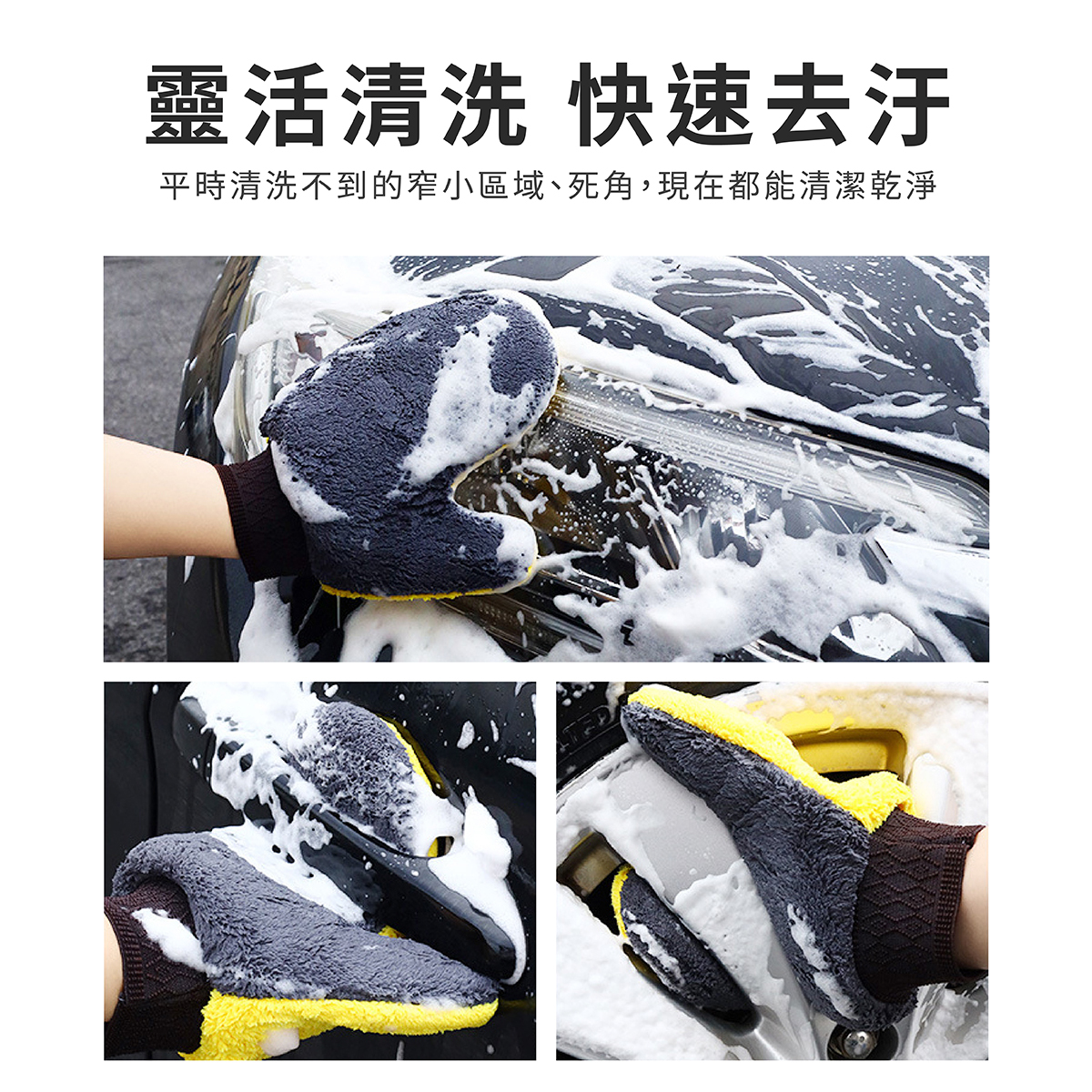 雙面大手掌洗車手套是一款專為車主設計的高效清潔工具,擁有雙面刷毛設計,使其在洗車過程中能夠提供更高的效率和更好的清潔效果。這款洗車手套的設計類似手掌形狀,覆蓋面積大,讓車主能夠快速清潔車身、車窗、車輪等大面積區域,並且能夠深入清潔細縫和角落。