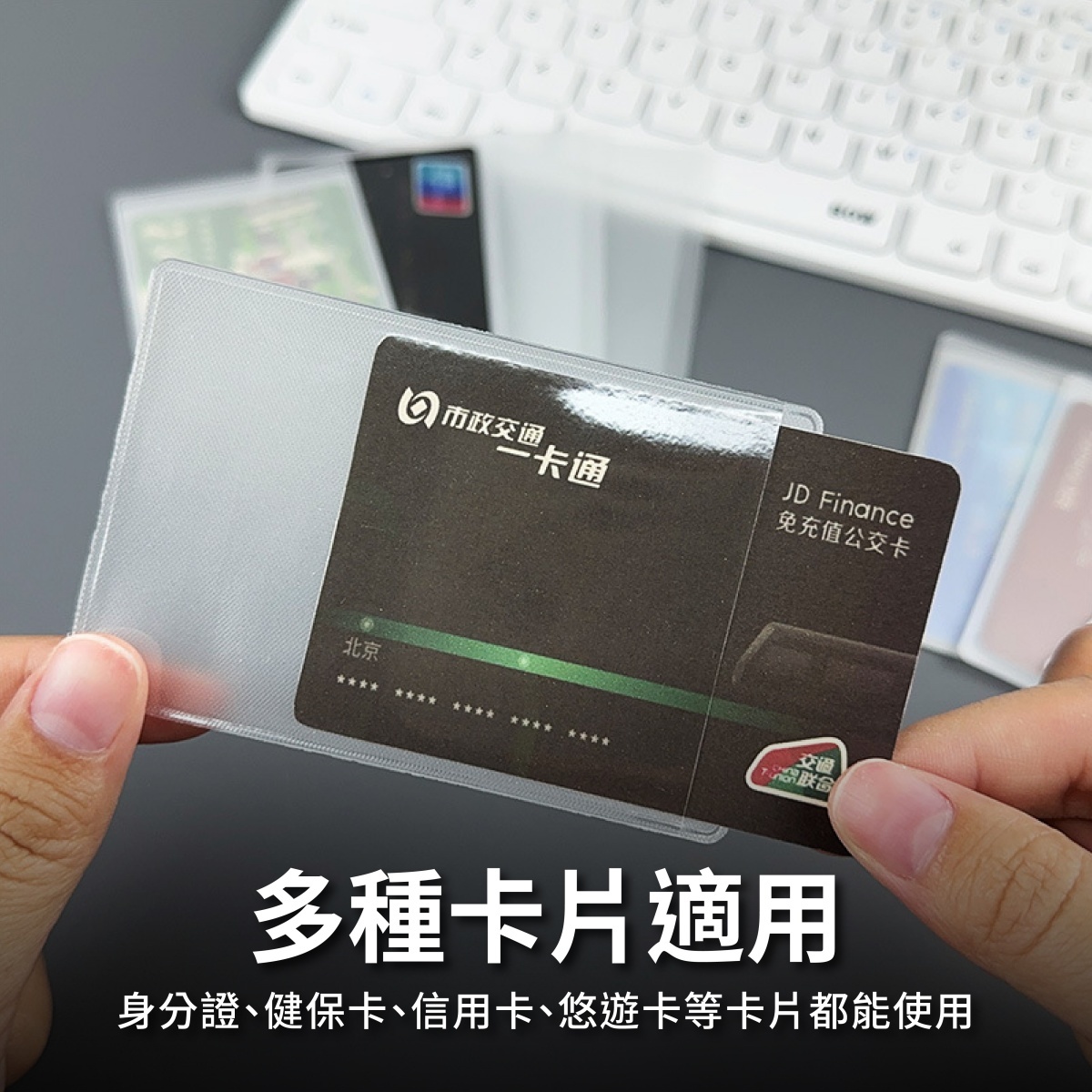 這款布紋透明證件保護套採用優選PVC材質,半透明布紋設計,質感細緻且耐用。具有防水防潮功能,能有效保護您的證件免受水氣損害。耐磨耐刮的特性能防止卡片表面刮花,保護您的身分證、健保卡、信用卡、悠遊卡等不受損傷。圓角設計避免刮手,讓您使用更加舒適,是日常生活和外出攜帶證件的最佳選擇。