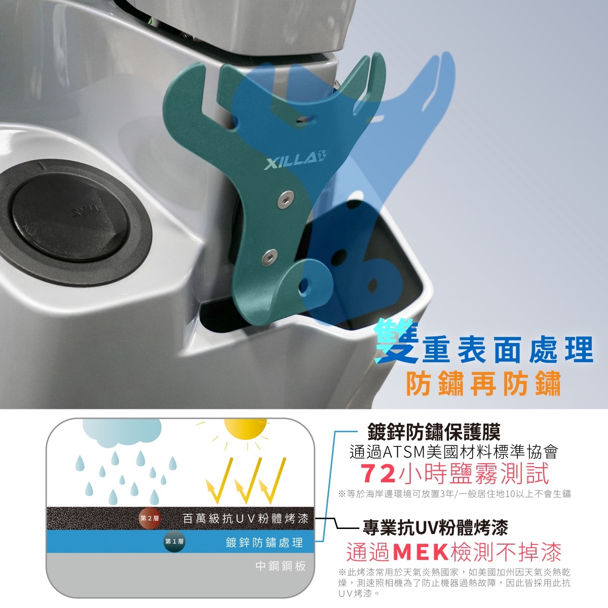 - **雙層防鏽處理:** 第一層鍍鋅防鏽保護層,第二層耐候性砂紋粉體烤漆,抗氧化性能卓越。