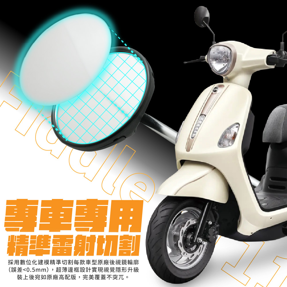 專為Fiddle LT 115設計,採用光學級真玻璃與視力防眩護甲膜,有效過濾強光,夜間騎乘較安全。角落曲率設計可擴大視野至200%,減少死角,提升視覺與超車的安全性。鏡片輕薄耐刮,專車專用裁切,安裝簡單不留痕跡,是通勤與長途騎士的安全升級方案。