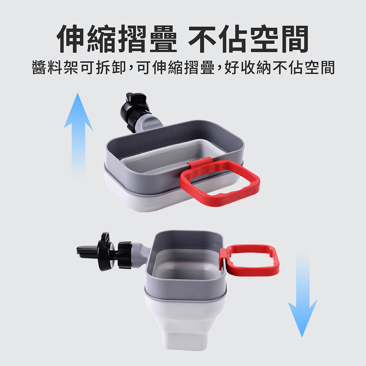 汽車摺疊醬料架專為車內飲食設計,可單手輕鬆拿取醬料,讓用餐更便利。除了沾醬,也能收納手機、酒精、鑰匙等小物,充分利用車內空間。夾式固定安裝簡單,牢牢夾住出風口葉片,不影響空調使用,避免醬料打翻或物品掉落。伸縮摺疊式設計,不使用時可收起,不占空間,讓車內保持整潔,是外食族與長途駕駛的必備配件。