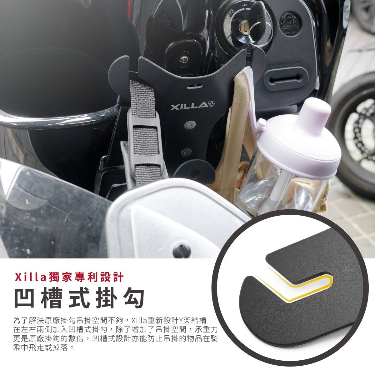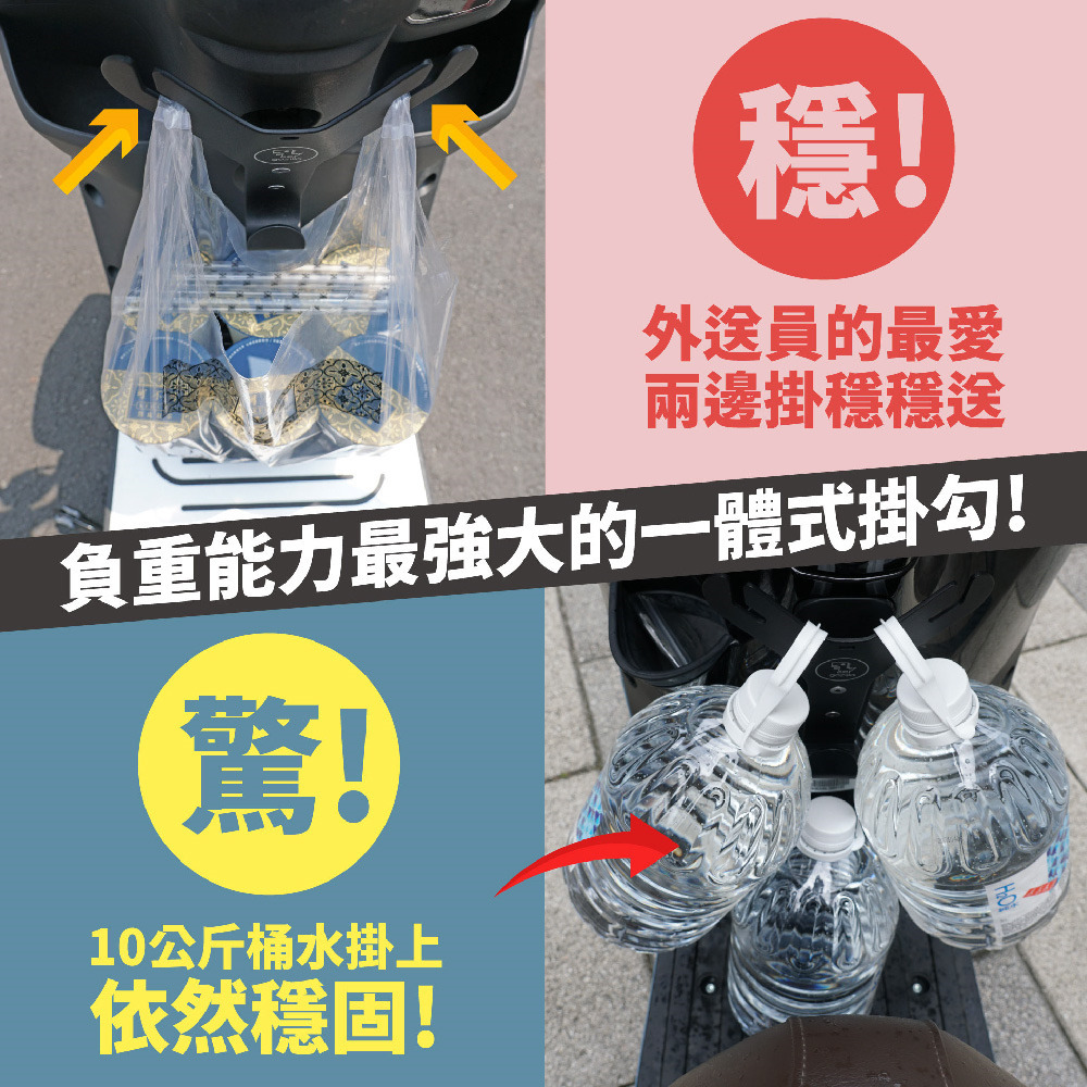 👍創新凹槽式掛勾設計,讓袋子滑入掛勾內,不怕遇坑洞袋子噴飛