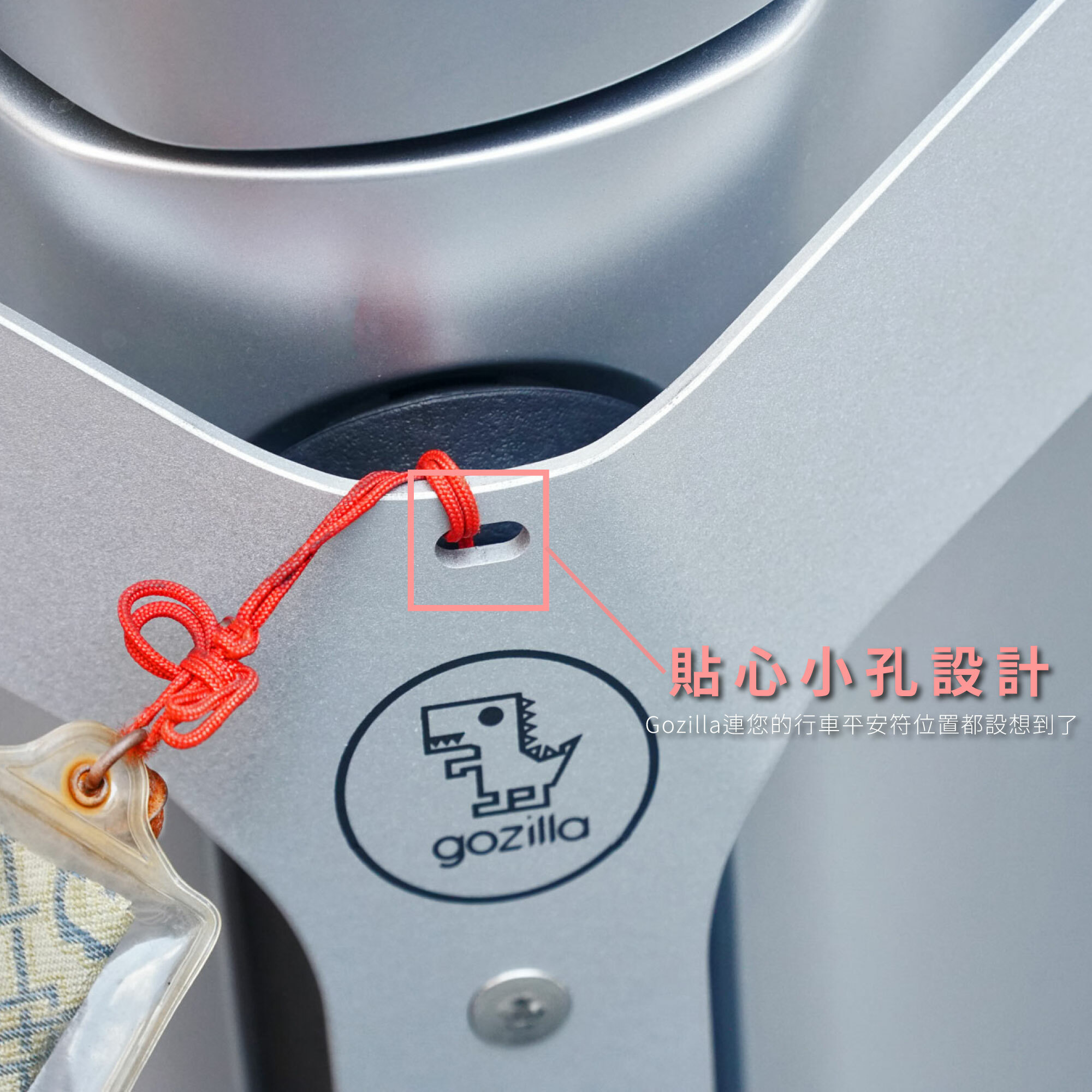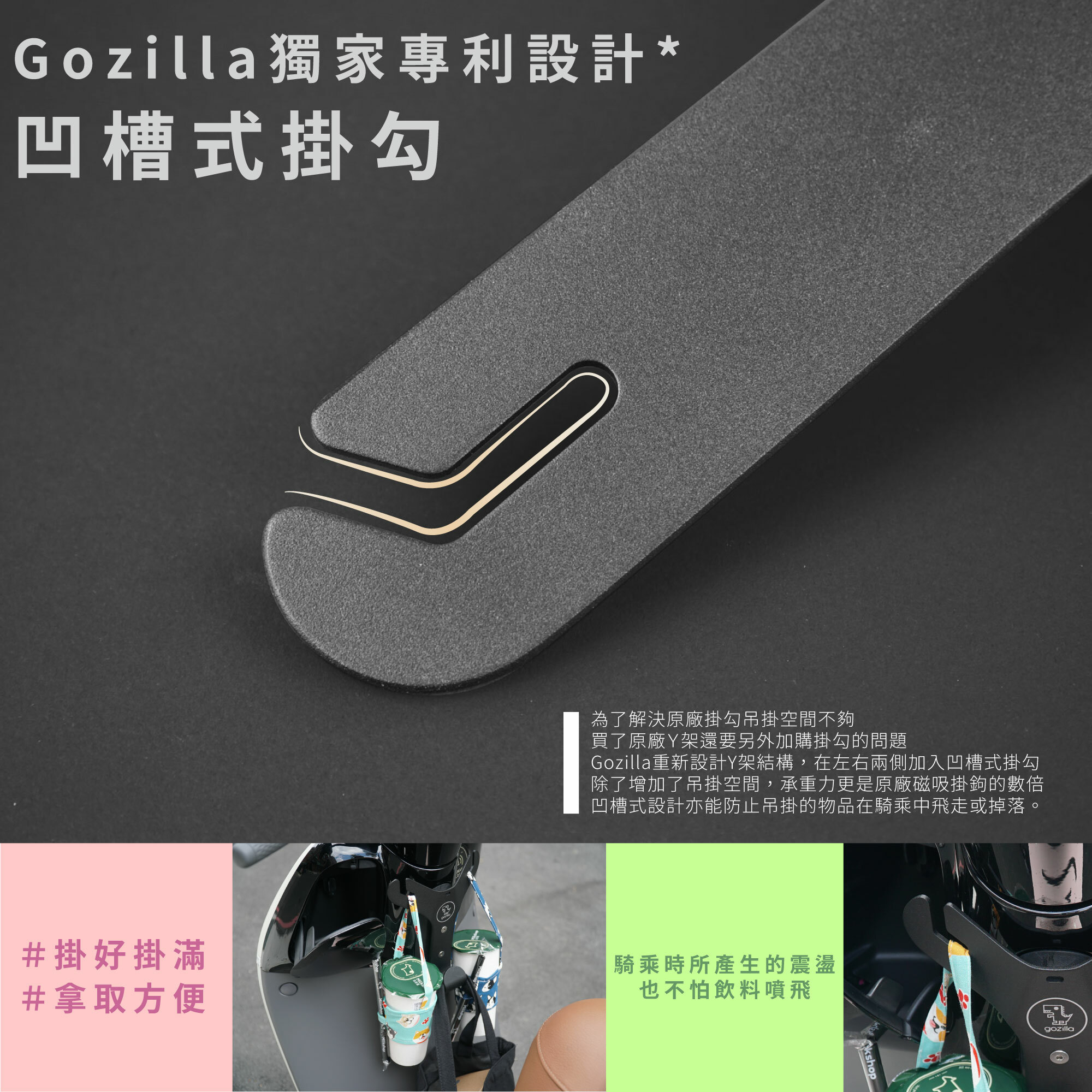👍創新凹槽式掛勾設計,讓袋子滑入掛勾內,不怕遇坑洞袋子噴飛