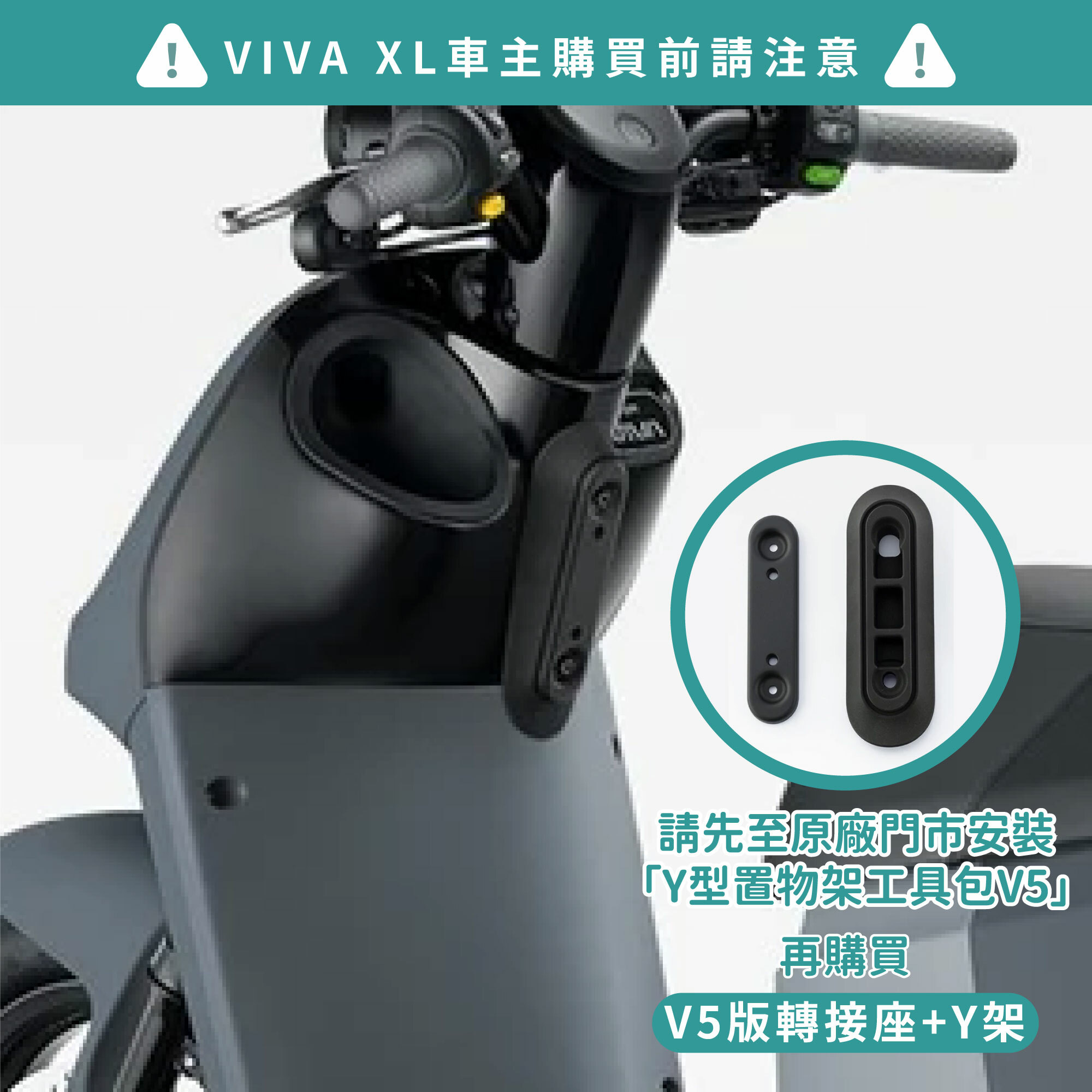 👉VIVA XL系列車款需先至原廠gogoro門市安裝「Y型置物架工具包V5」才能安裝本Y架唷!