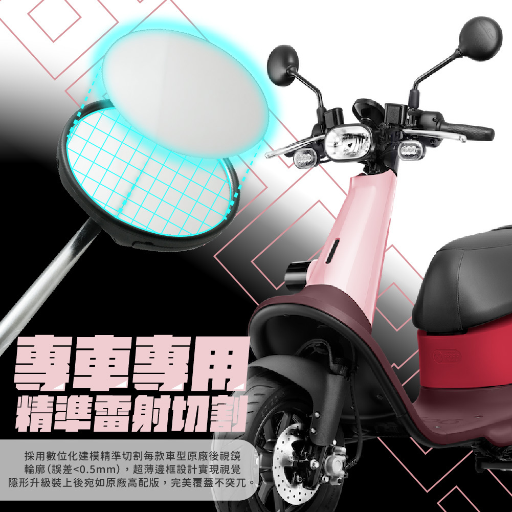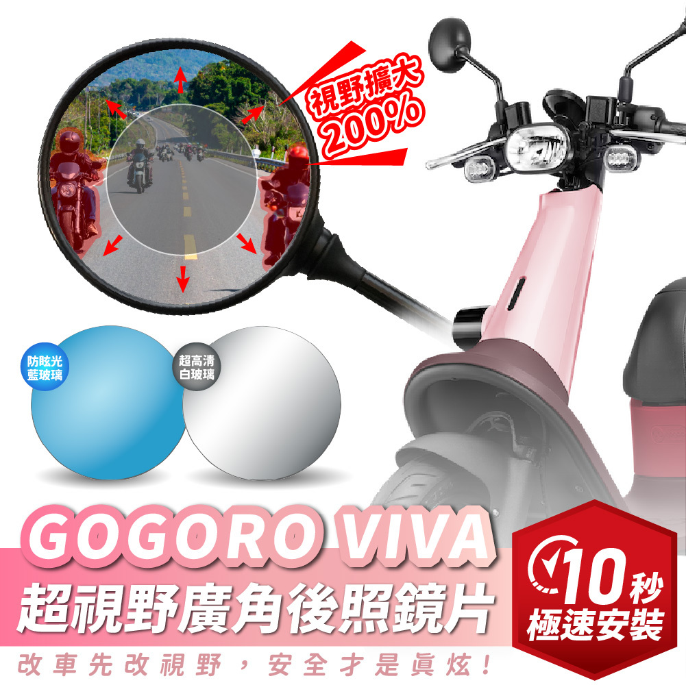 GOGORO VIVA 專用超視野廣角後照鏡片,採用高清鏡面材質,擴大後方視野,有效降低行車死角,提升安全性。防眩光設計,夜間或強光下依然清晰不刺眼。專車專用尺寸,安裝簡單穩固,不影響車身外觀。防水防霧塗層,即使雨天騎乘也保持清晰視線,讓行車更安心。