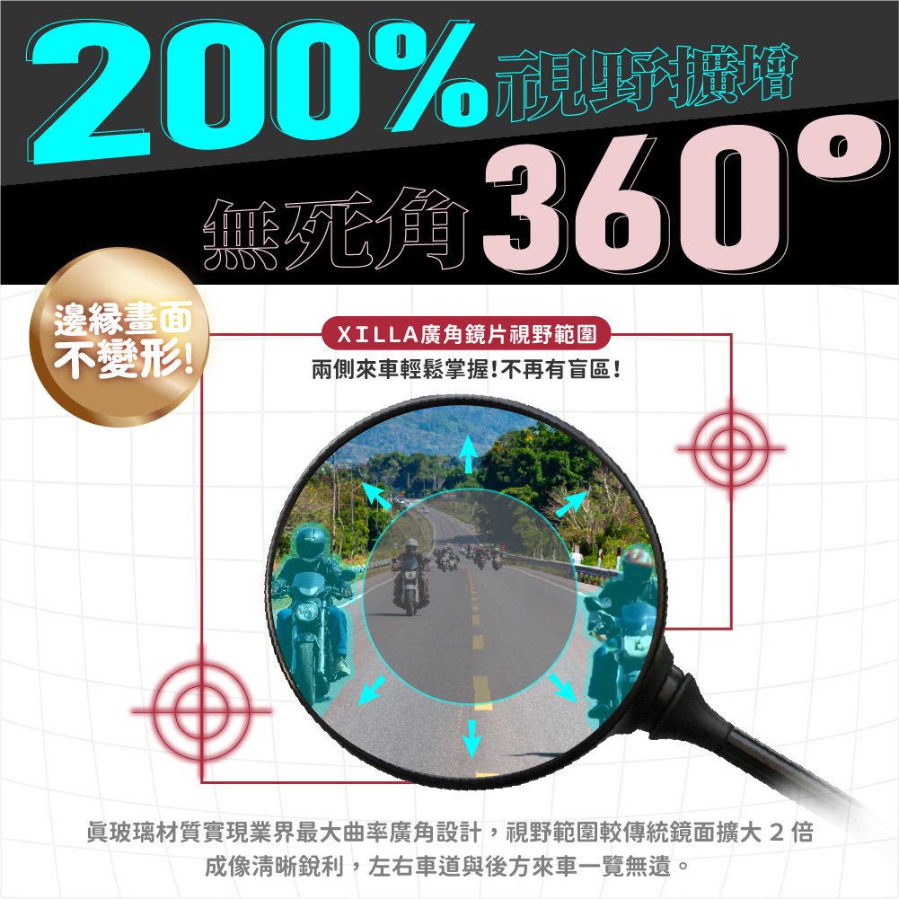 ●鏡片主要以凸面廣角來增大視野範圍,同時也會使鏡中的物體看起來比原本的更小,安裝後可能需重新適應後方來車的距離,初期請小心騎乘以避免交通事故。