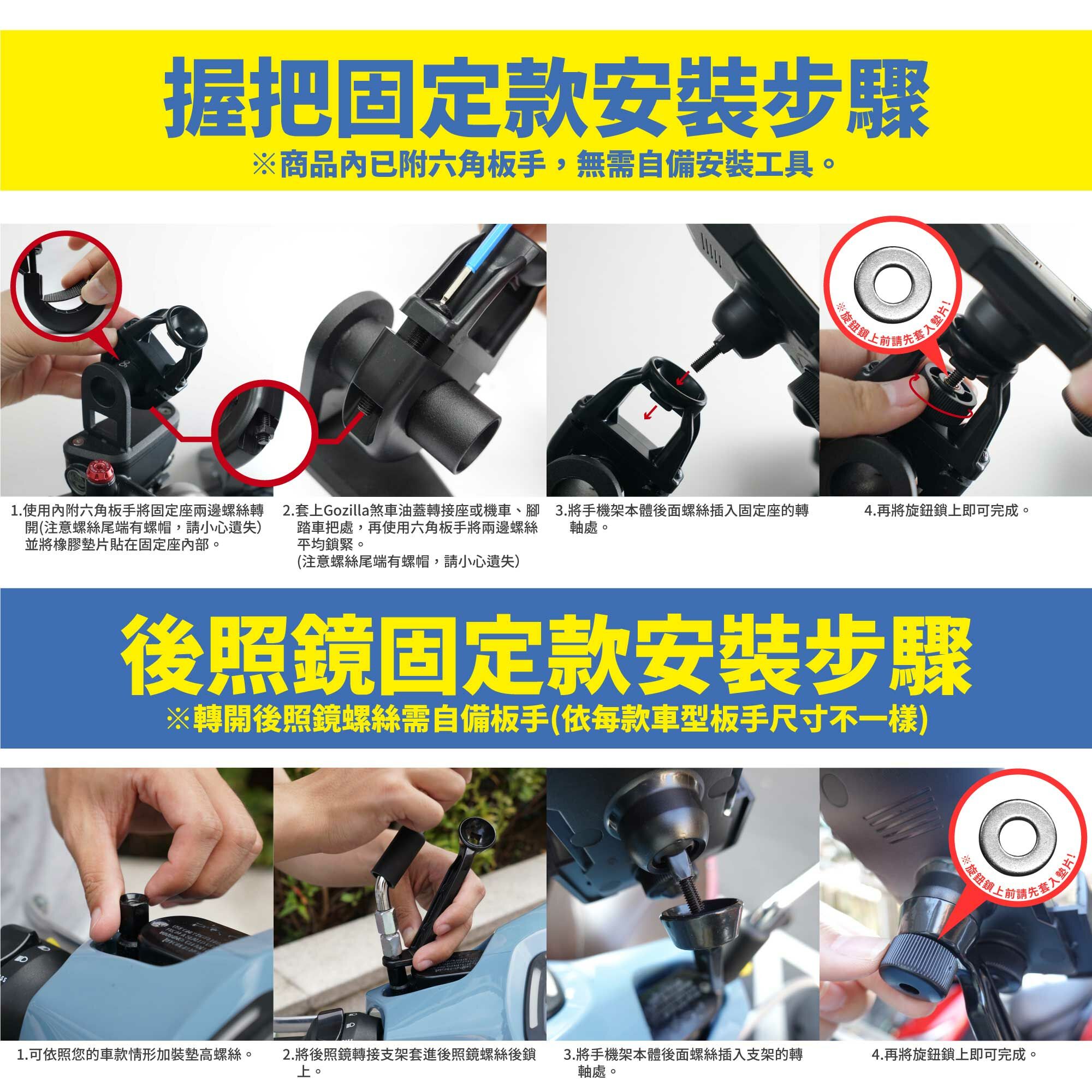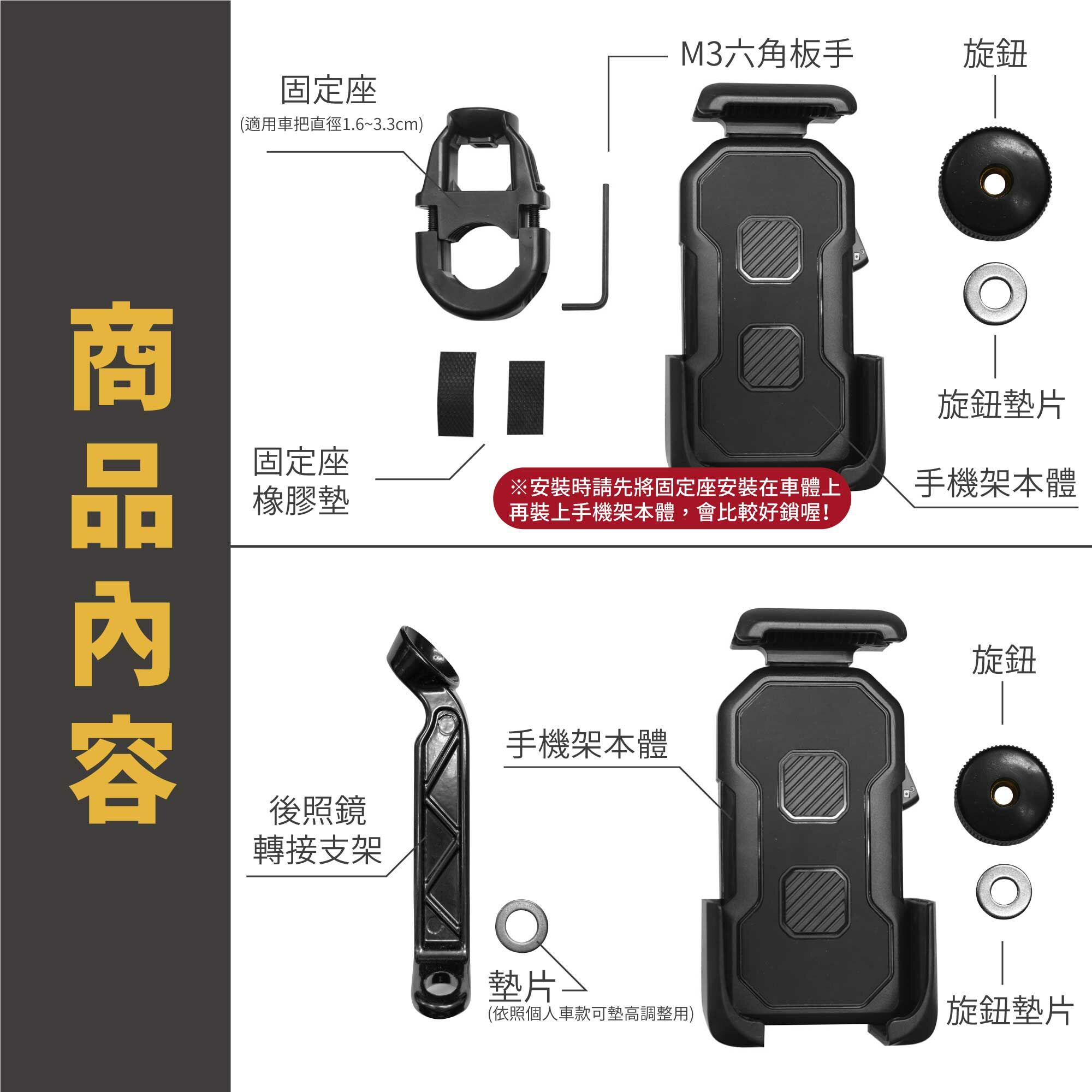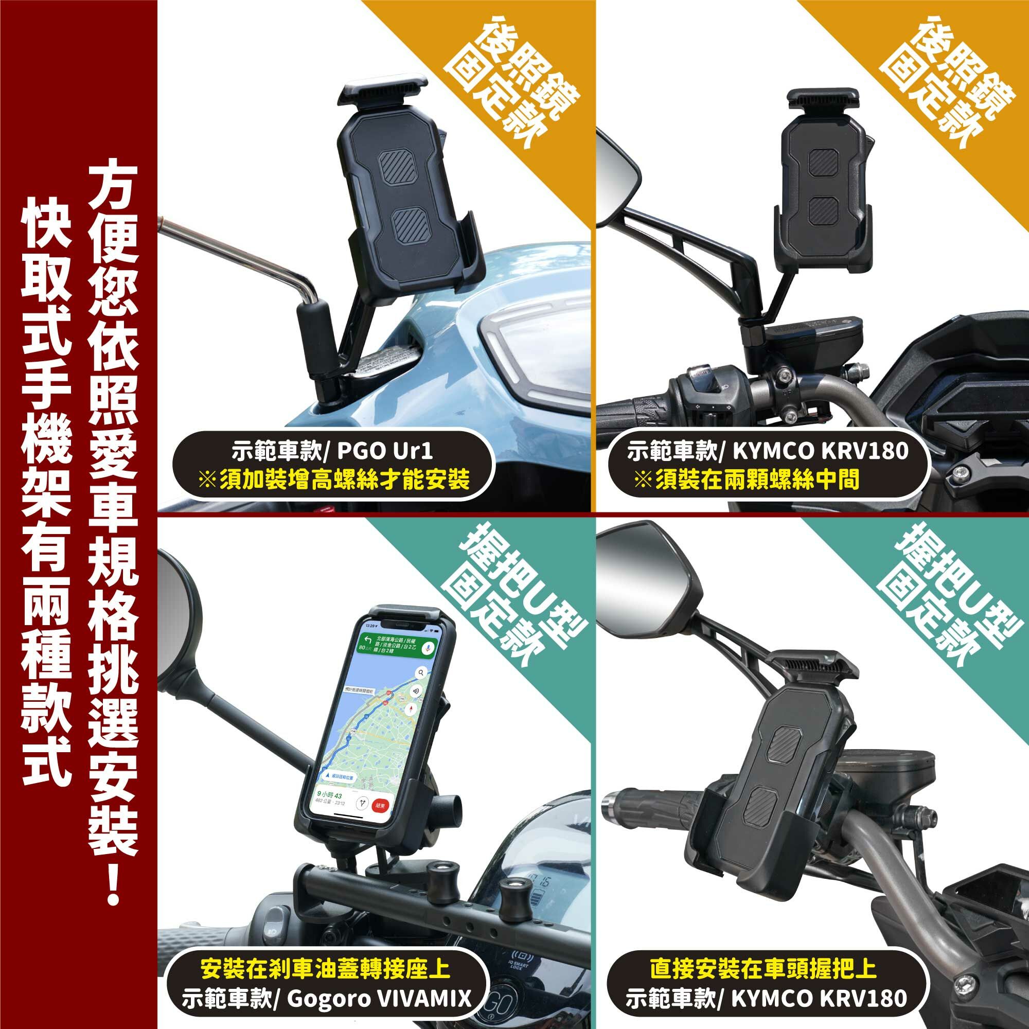 ✔️如果您是使用XILLA多功能煞車油蓋支架/鋁合金橫桿/機車裸把,請選擇【裸桿/握把U型固定款】