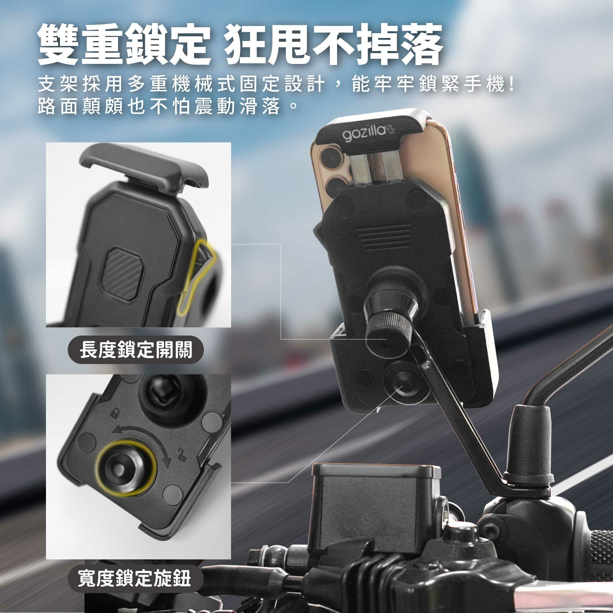 🏆雙重鎖定機制,長度及寬度都有鎖定裝置,顛頗路面再也不怕手機震動滑落!