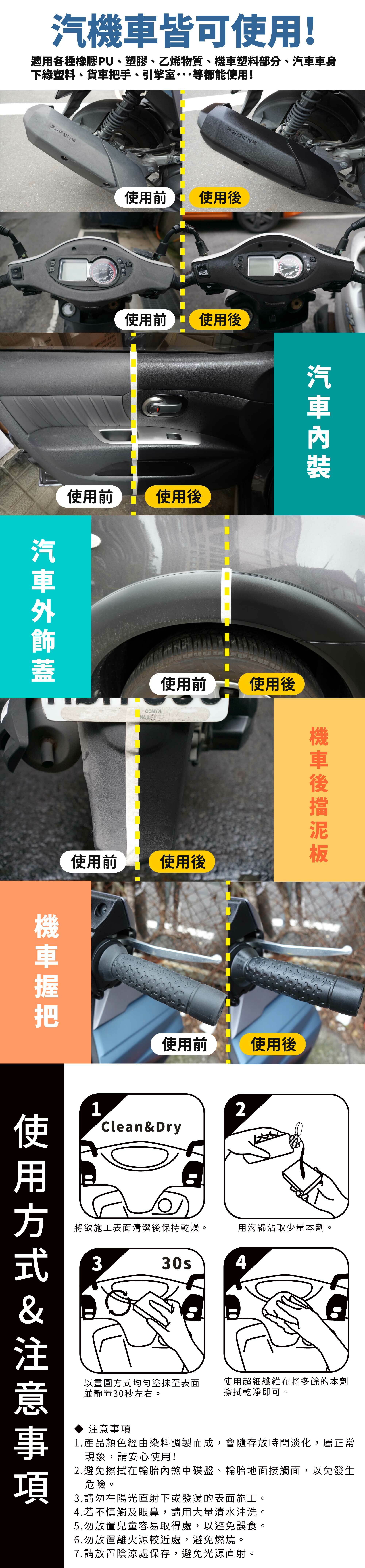 塑料還原劑是一款專為修復和保護塑料表面而設計的產品。它能有效去除塑料表面上的老化痕跡、氧化層、刮痕、變色等,並能恢復塑料的原始光澤和色澤。塑料材料經過長時間的使用或暴露在陽光下,會逐漸褪色或變脆,這款還原劑可以修復這些問題,讓塑料表面恢復如新,延長其使用壽命。