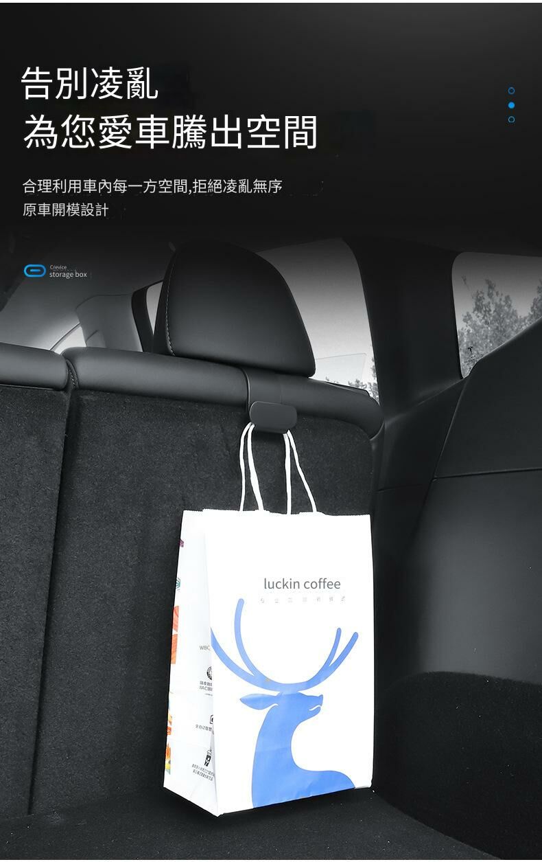 後排頭枕掛勾,專為 Tesla Model Y 設計,無需工具即可安裝,無損原車結構。頭枕卡位設計,確保穩固不晃動,不影響座椅調節。精巧隱藏式外觀,與內裝完美融合,不突兀更美觀。可懸掛包包、購物袋、外套等物品,提升車內收納空間,讓車內整潔有序。高強度材質,耐用不變形,讓您的愛車更實用!