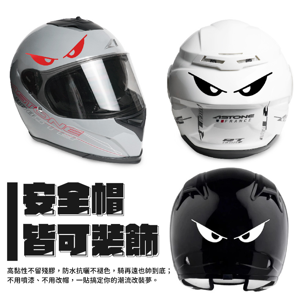 安全帽邪惡眼睛潮貼,採用高亮反光材質,有效提升夜間行車安全。獨特邪惡眼睛設計,增添個性與霸氣風格,不僅美觀,還能提高頭盔及車輛的可視性,防止碰撞意外。防水耐用,輕鬆貼合各種安全帽,是騎士必備的安全防撞裝飾貼紙。