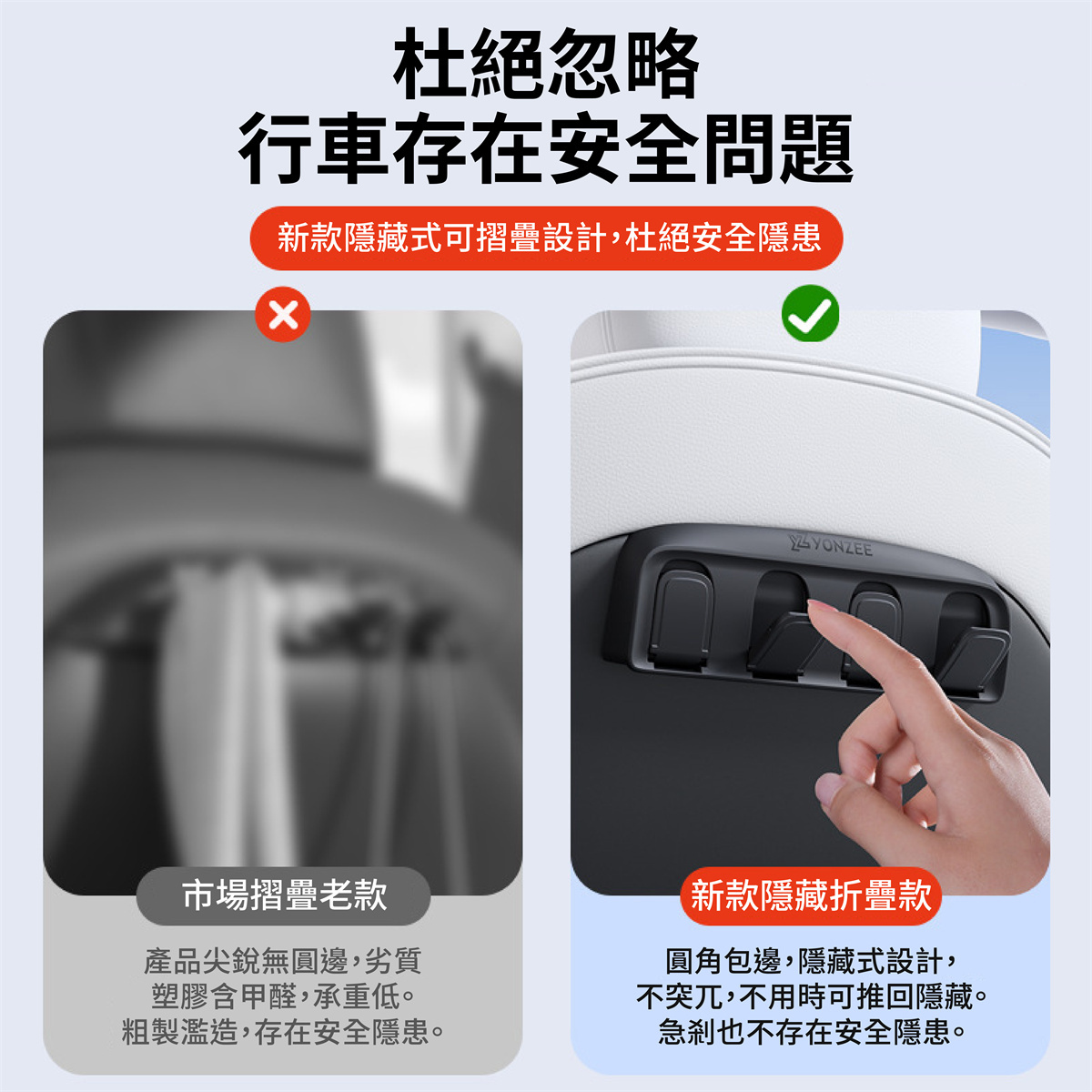 🏆不用時可隱藏摺疊,不佔車內空間