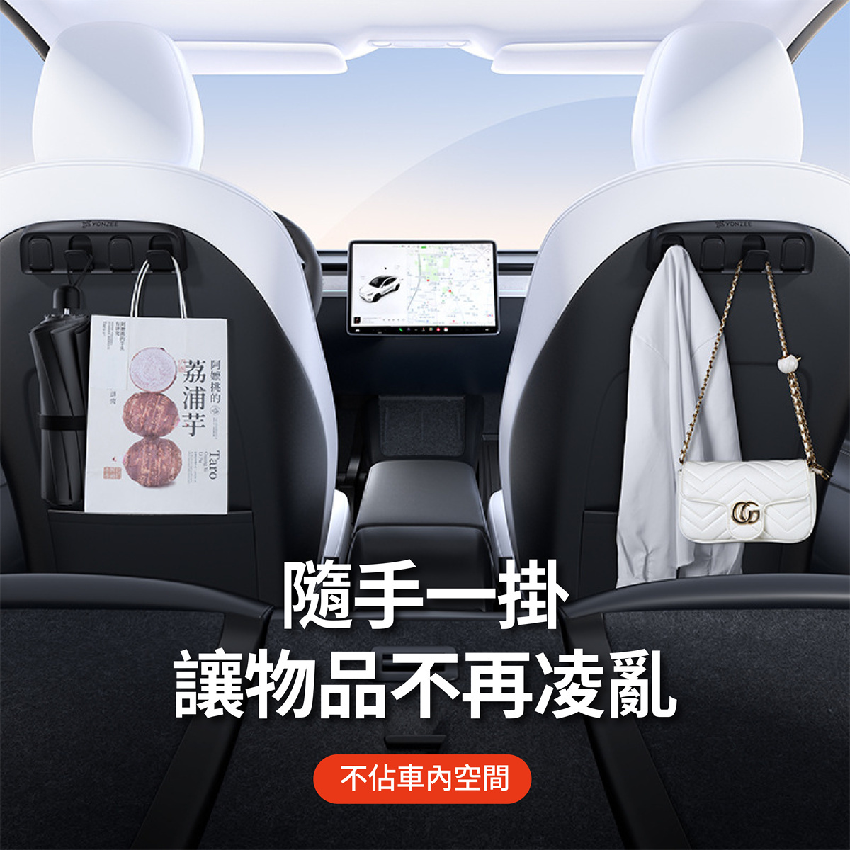 隱藏摺疊後排座椅掛勾,專為 Tesla Model 3 和 Model Y 設計,不使用時可折疊收納,不佔車內空間,兼具美觀與實用性。採用高品質 ABS 材質,堅固耐用,耐磨耐腐蝕,無異味且環保健康。無需鑽孔,輕鬆卡入即可安裝,無損原車內裝,讓車內收納更加便利。無稜角安全設計,可穩固掛放袋子、雨傘、包包等物品,避免行駛中物品散落,提升行車舒適度與整潔度,是 Tesla 車主的貼心配件。