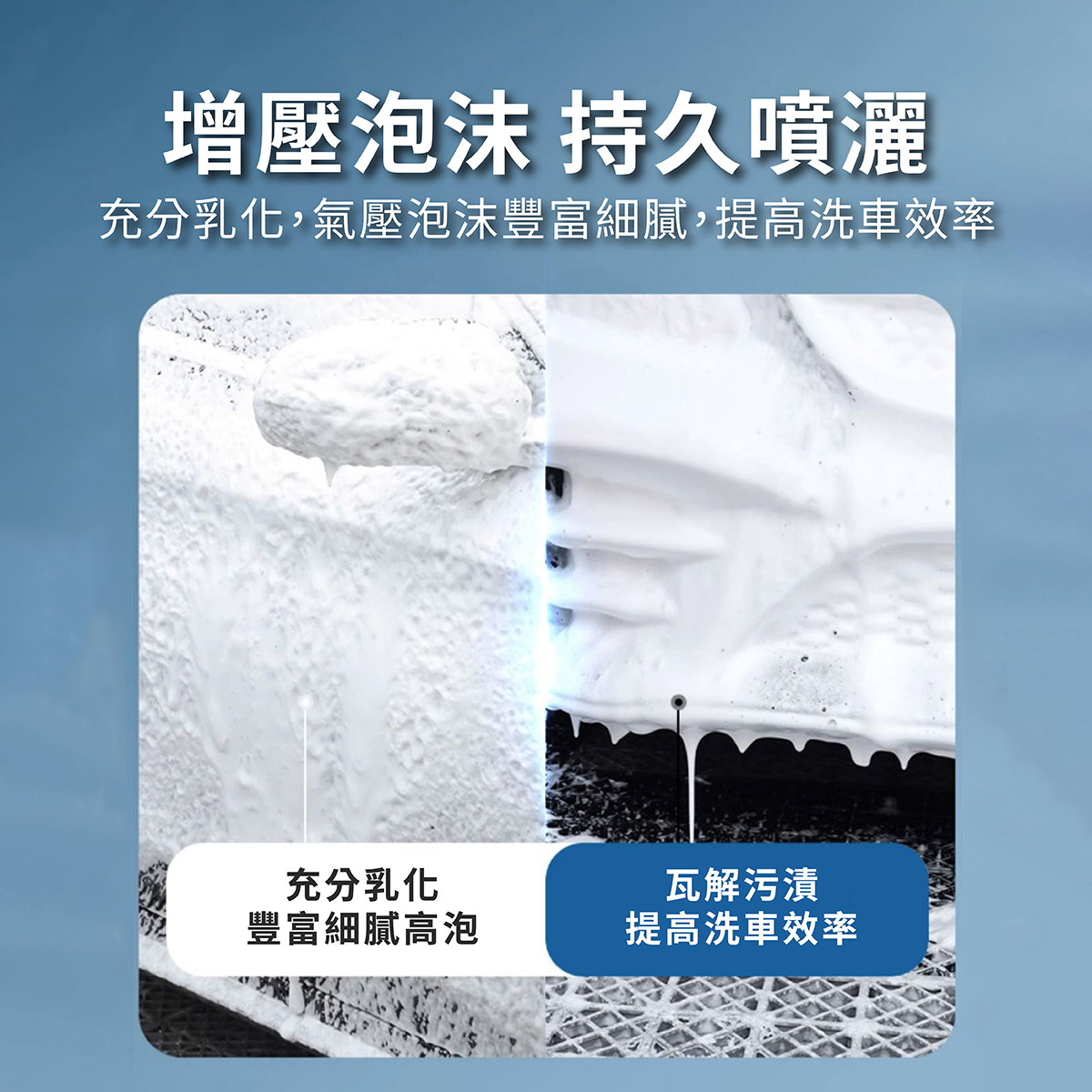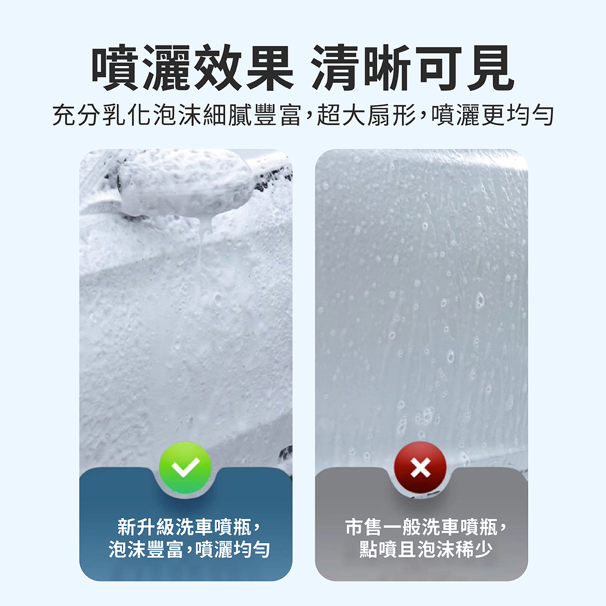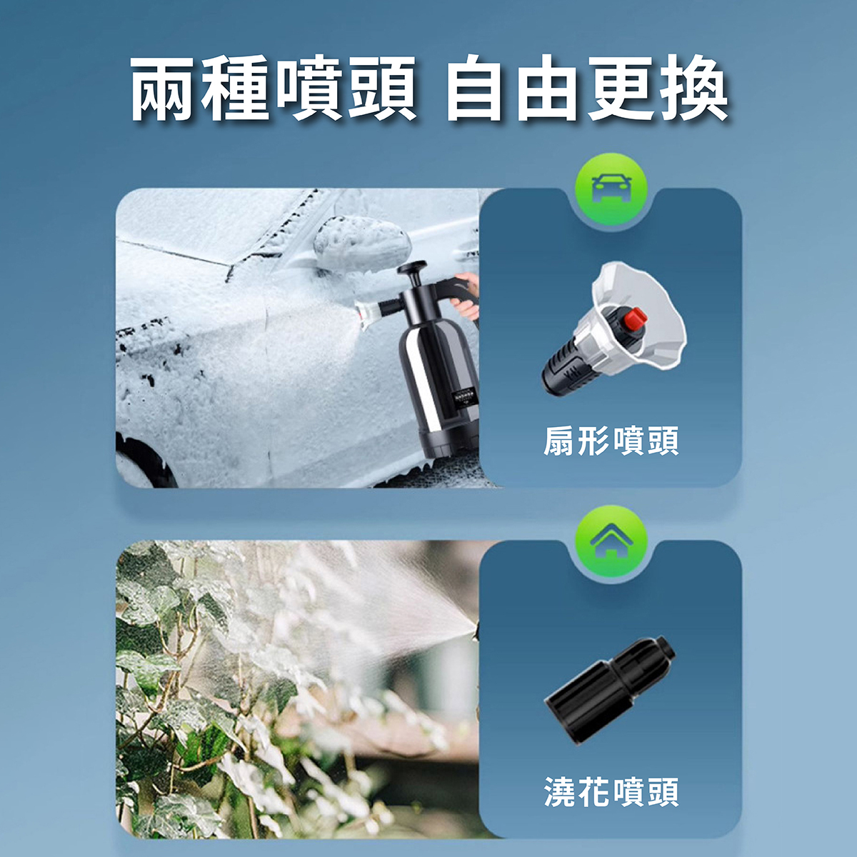 兩種噴頭可更換~泡沫豐富~噴灑持久!
