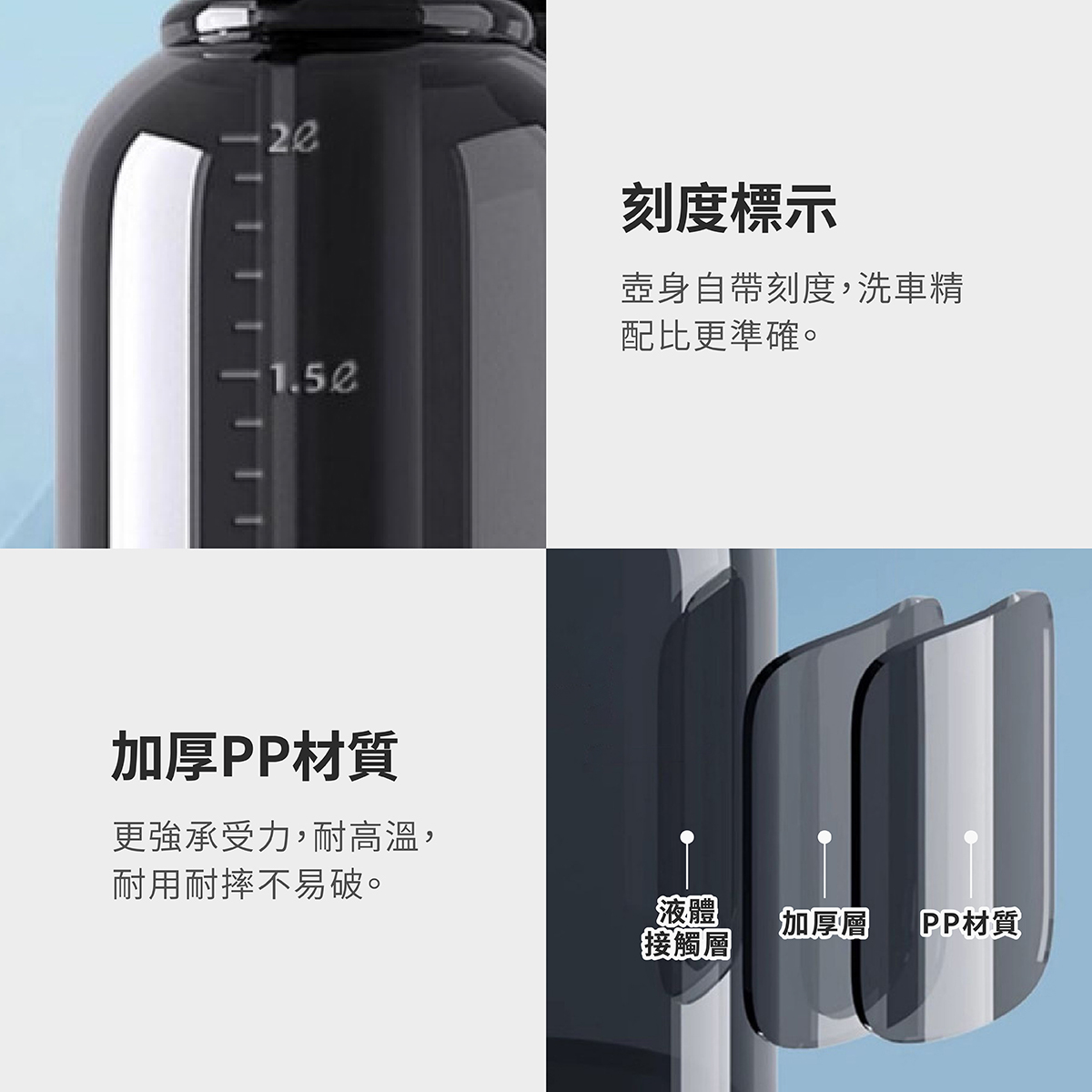 🏆壺身自帶刻度,洗車精配比更準確