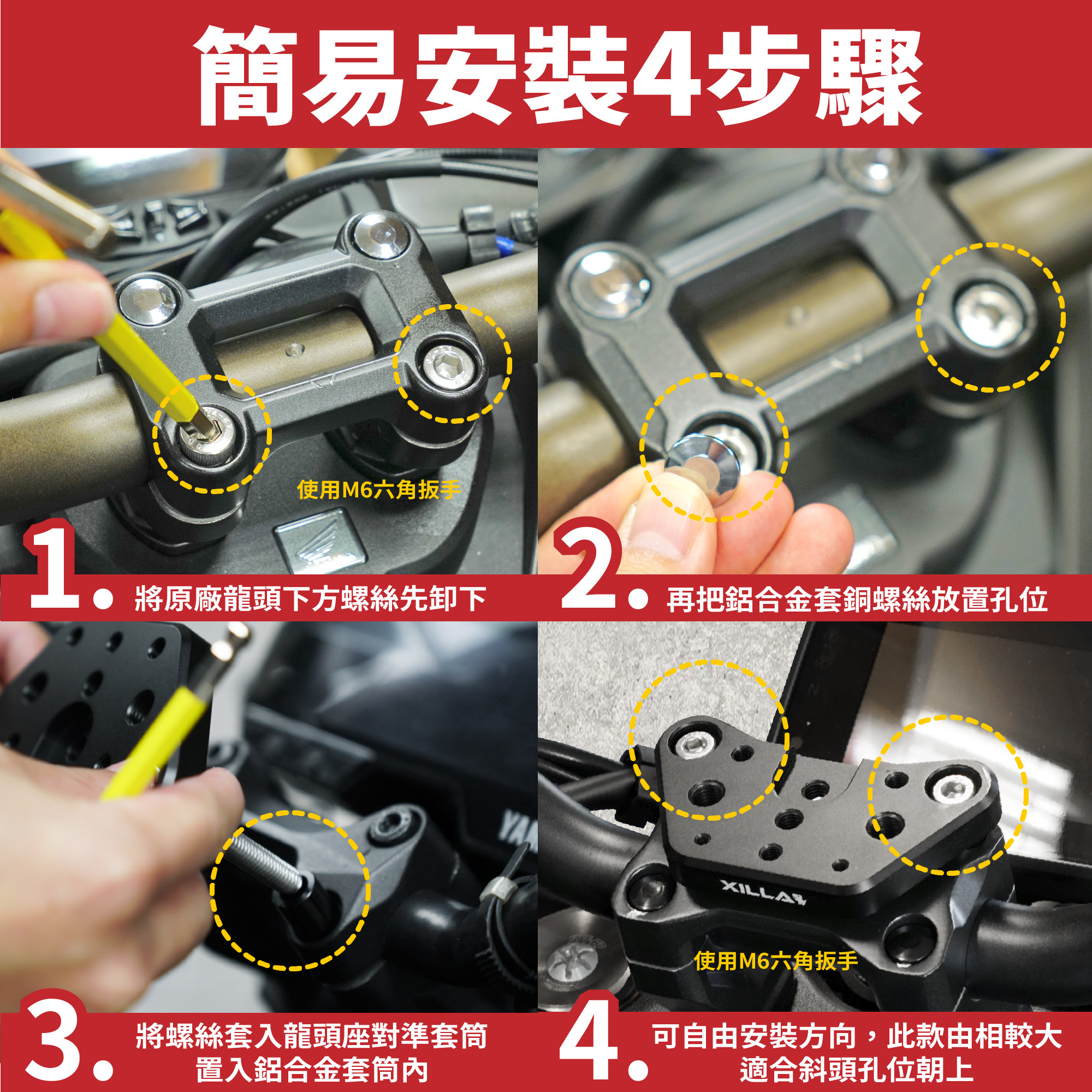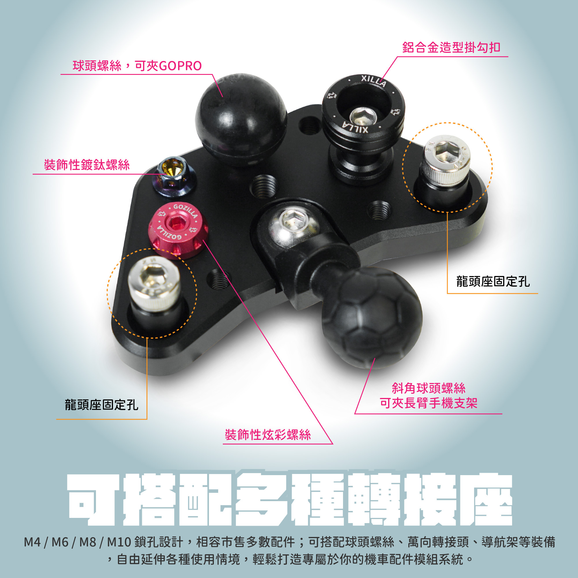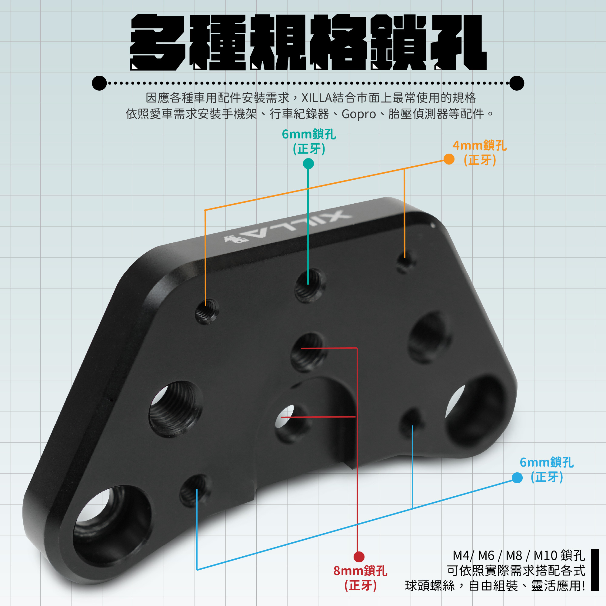 ⚠️可搭配賣場「M6/M8/M10支架橋接頭」「XILLA後照鏡炫彩螺絲塞M8/M10正牙」使用