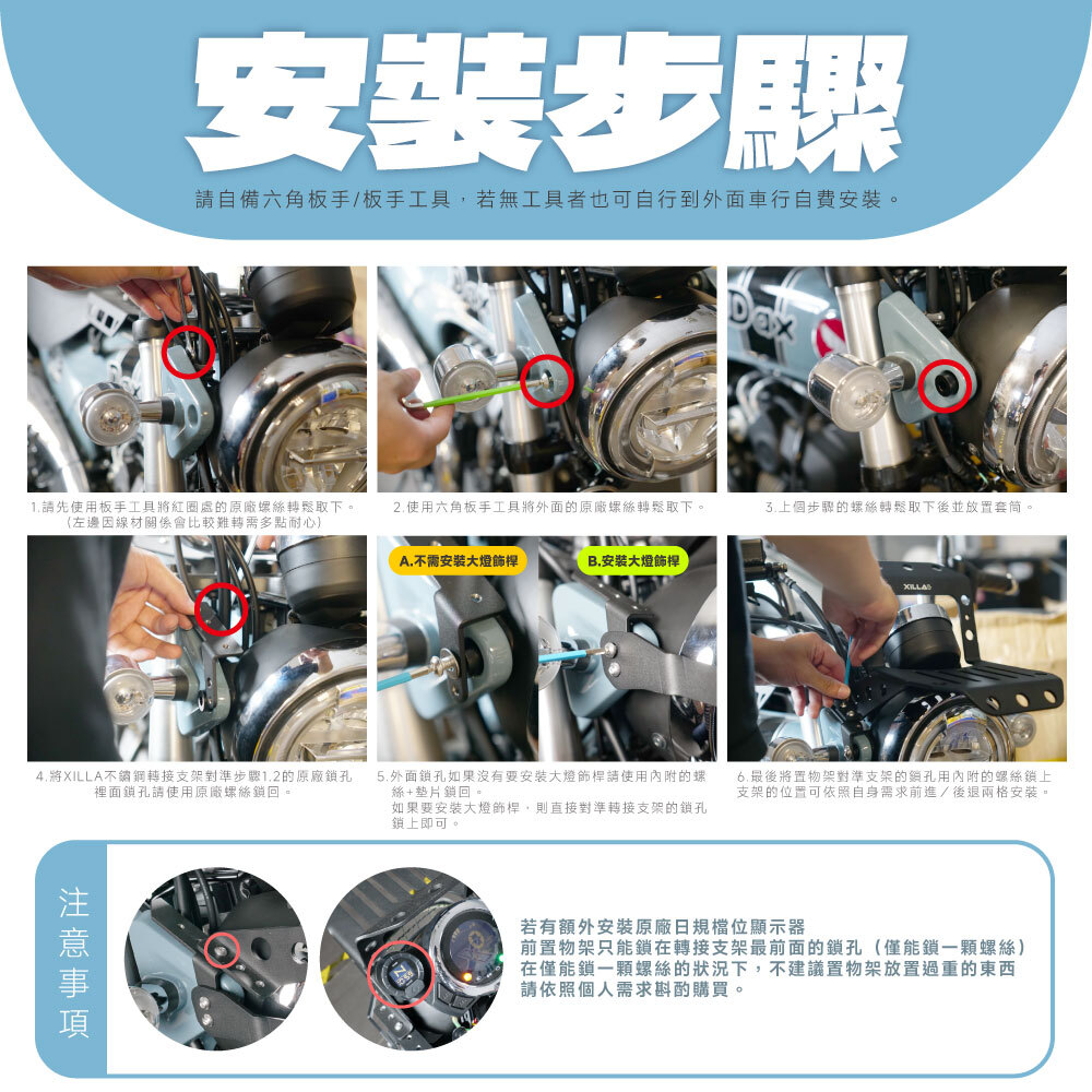 XILLA 專為 HONDA DAX 125 量身打造前置物架+大燈護網套件