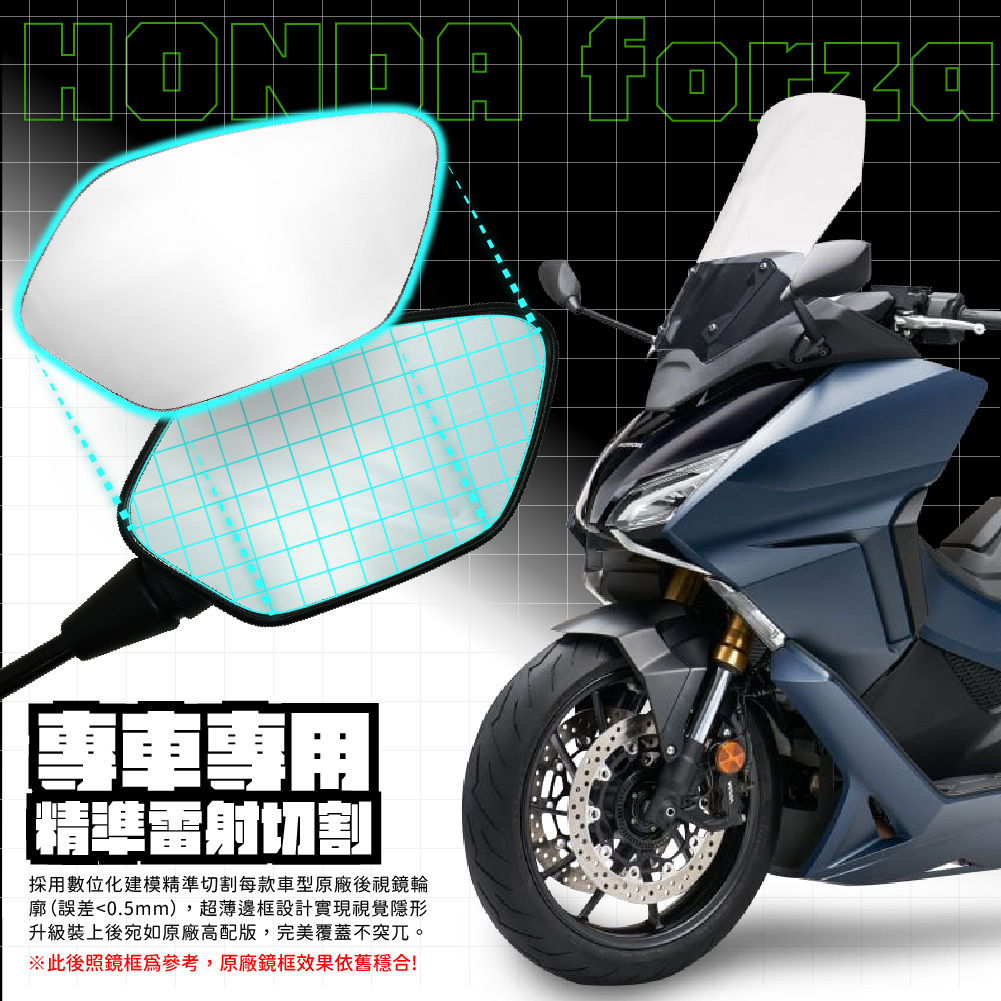 HONDA FORZA750 專用「超視野廣角後照鏡」針對大型速克達騎乘需求打造,採用凸面廣角鏡片,大幅擴展後方可視範圍,有效降低側後方盲區,市區通勤與快速道路變換車道更安心。高透光鏡面搭配防眩光處理,夜間騎乘不易被後車燈干擾,影像清晰舒適。強化支架結構可減少行駛震動造成的畫面模糊,長途騎乘依然穩定;多段角度可調整,快速找到符合坐姿的最佳視角。專車規格直上安裝,不影響原車外觀質感,兼顧安全與風格,是 FORZA750 日常與旅跑升級的實用配件。