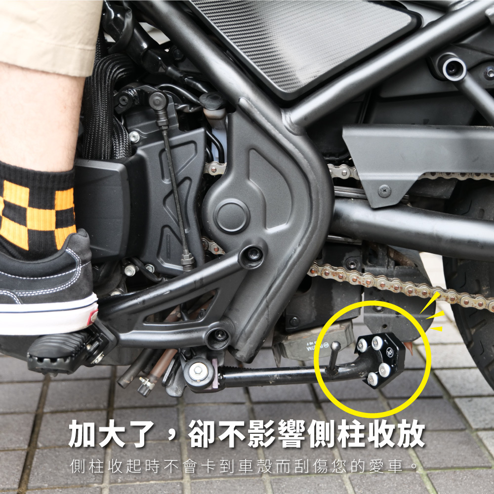 HONDA REBEL 500/500S 鋁合金側柱加大底座,專為提升車輛穩定性與支撐力而設計。此加大底座採用高強度鋁合金材質,具有輕量化與耐用性,能有效增強車輛側柱的穩定性,防止側柱變形或損壞,提升整體車輛的使用壽命。加大設計可提供更好的支撐力,確保車主在日常駕駛及停車過程中更加安全穩定。安裝簡便,完美貼合HONDA REBEL 500/500S ,無需改裝即可輕鬆升級,讓車主在享受騎行的同時,也能提升車輛的耐用度與性能。