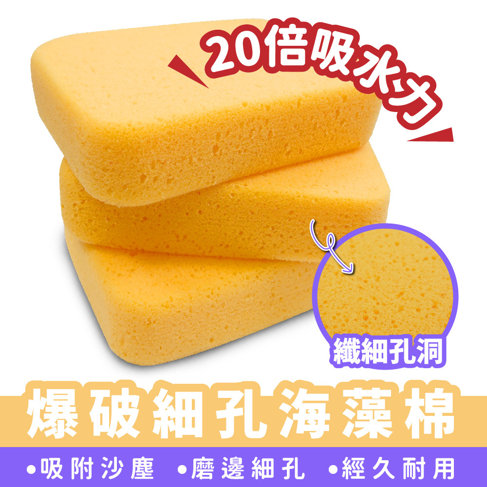 高效能的清潔材料,通常用於車輛或家居清潔中。其表面擁有微小的細孔結構,能夠迅速吸附和清除灰塵、油汙及其他污漬。這種海藻棉因其天然成分與特殊結構,在清潔過程中不僅能深入表面,還能有效防止刮傷,適用於多種表面,提供強效的清潔效果。