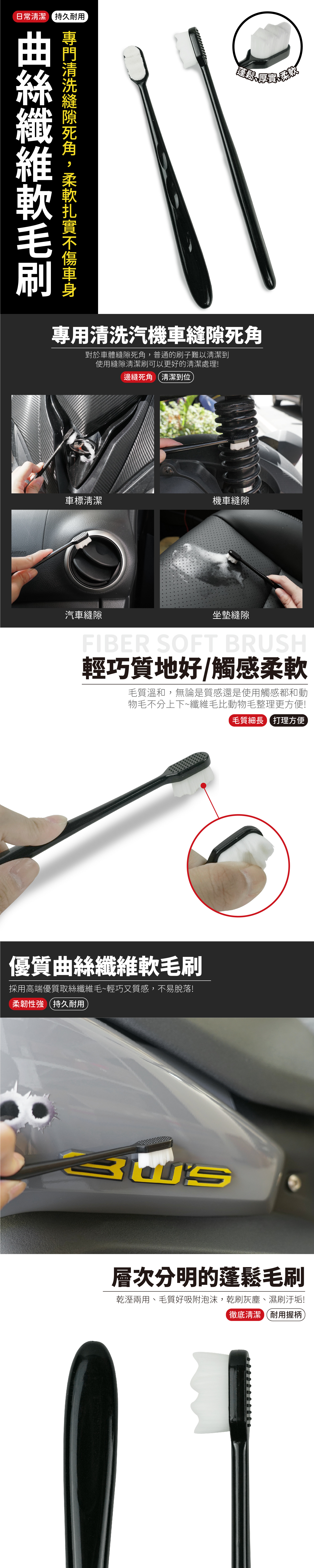 曲絲纖維軟毛刷是一款專為精細清潔設計的刷子,擁有柔軟的纖維刷毛和曲線形狀的刷頭。這款刷子可以有效清潔各種表面,包括車輛內部、家具、電子設備及其他敏感區域,提供細緻且不傷害物品的清潔效果。無論是清理灰塵、污漬還是油脂,它都能輕鬆應對,適合需要精細保養的物品,讓清潔工作更加輕鬆高效。