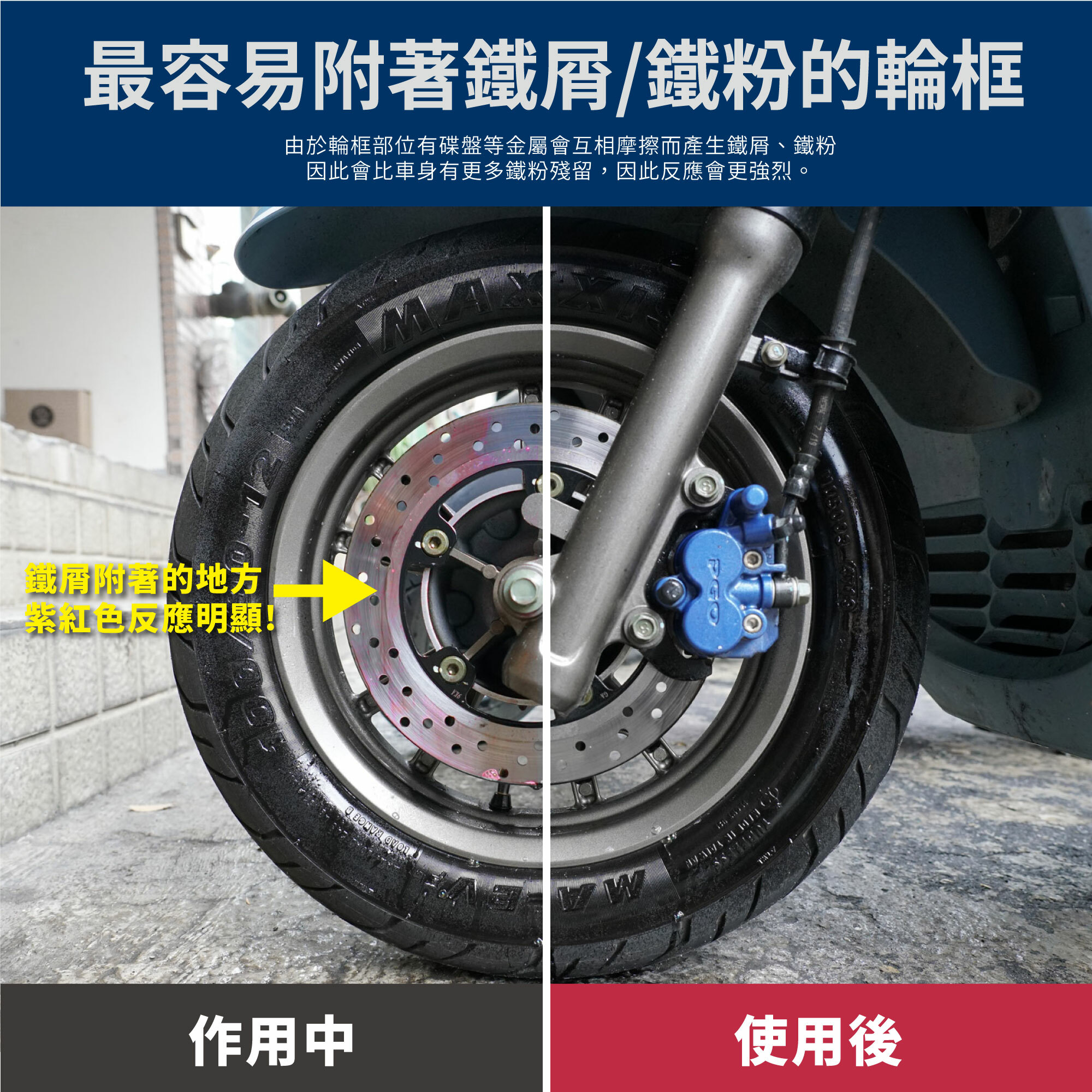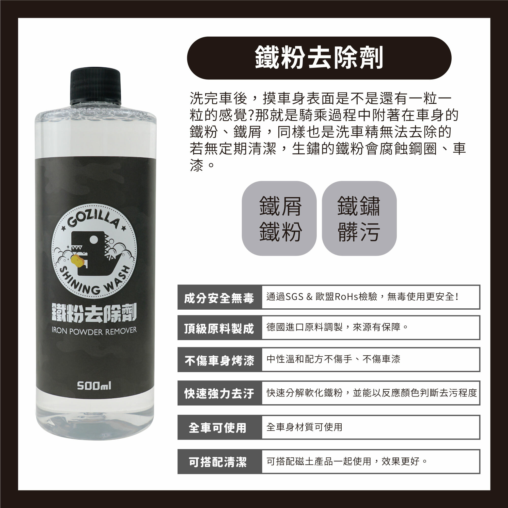 鐵粉去除劑是一種專為去除車身表面鐵粉、剎車灰塵、環境污染物及其他微小金屬顆粒設計的高效清潔產品。車輛在行駛過程中,常會受到來自道路、剎車系統等來源的鐵粉污染,這些細小金屬顆粒如果不及時清除,可能會嵌入車漆表面,對車漆造成損害,並導致氧化或腐蝕。鐵粉去除劑利用特殊的化學成分,能有效分解並去除這些污染物,讓車漆恢復光滑、潔淨。