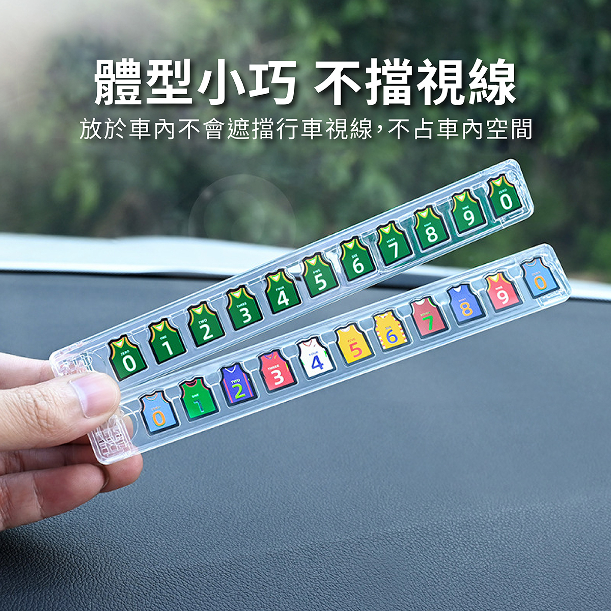 XILLA 汽車球衣臨停號碼牌,獨特球衣造型設計,小巧不占空間,不影響行車視線。內附 0-9 四組號碼貼紙,可隨心組合,輕鬆更換號碼。綠色夜光款可鎖住光線,自然發光長達 8 小時,夜間臨停也清晰可見。採用耐用 SBC 材質,輕盈堅固,不易變形,為您的愛車提供便利與個性化設計,讓臨時停車更加安心便捷。