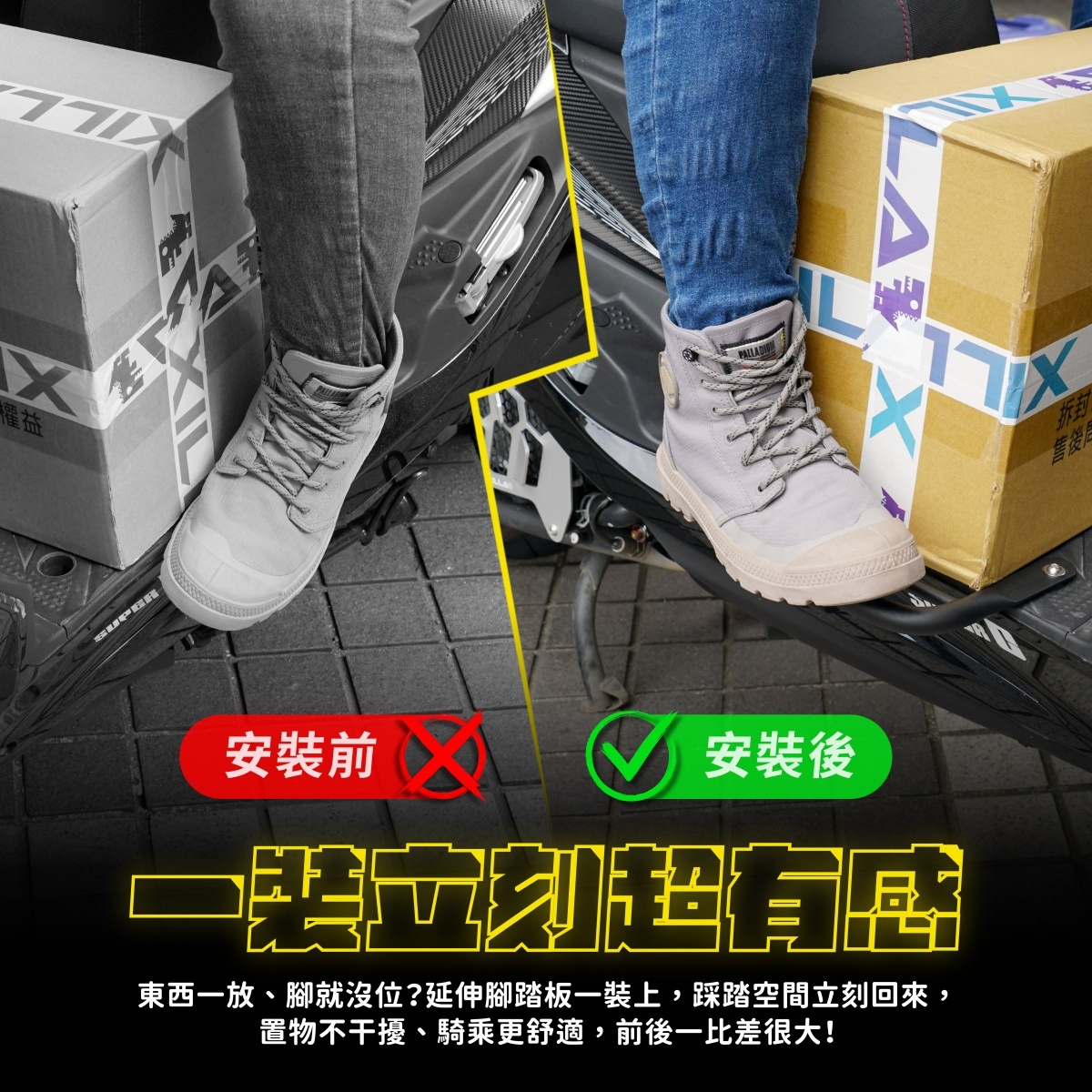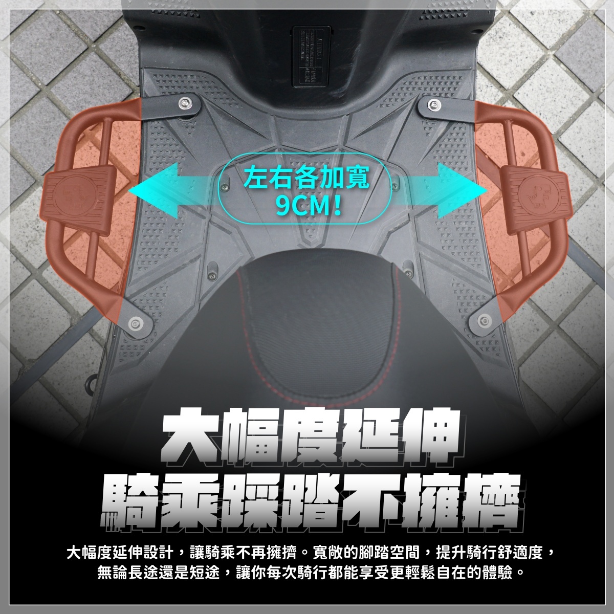 🏆 大幅延伸踏板空間,放包包、外送箱、袋子不再擠腳,空間利用率瞬間提升
