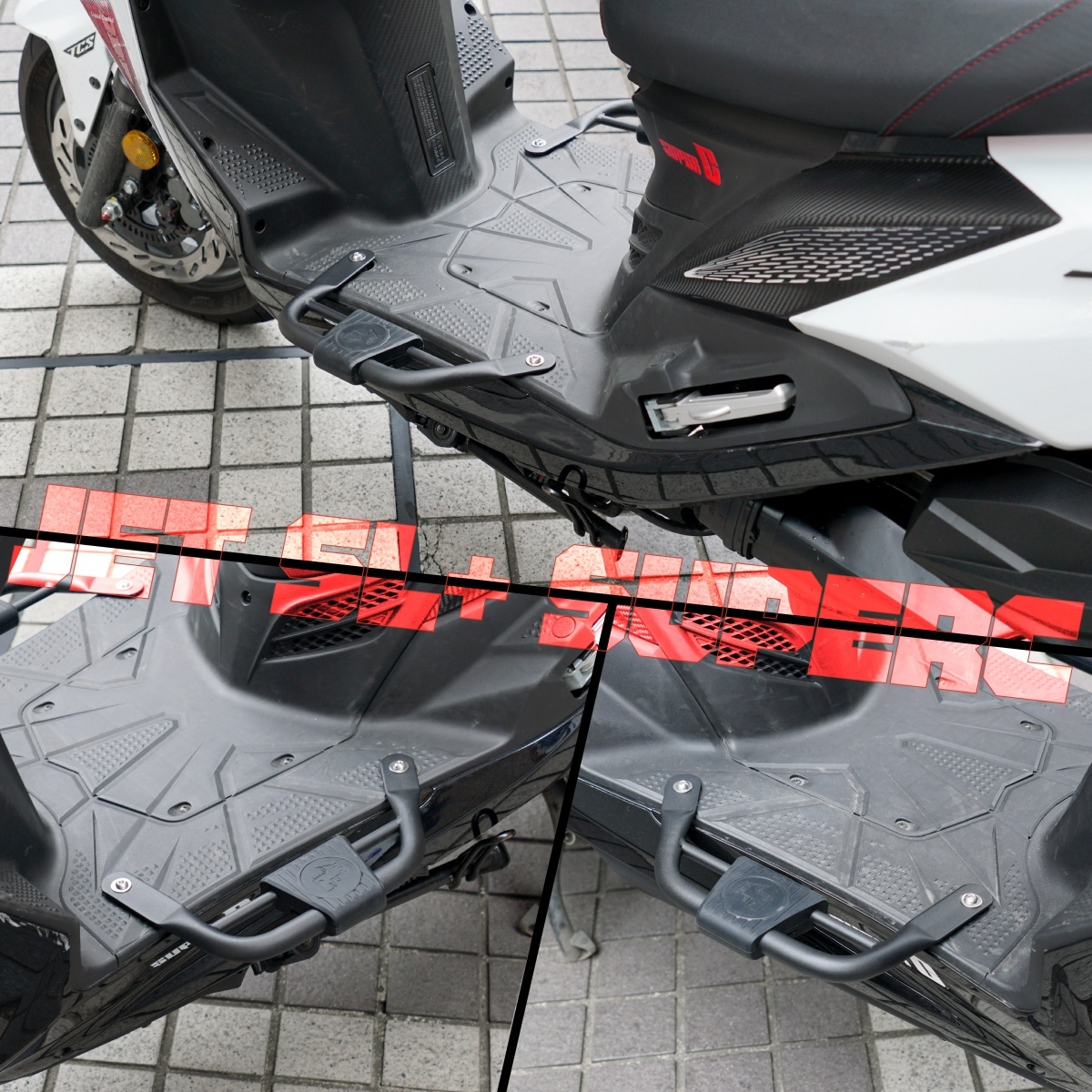 矽膠止滑延伸腳踏板,專為 JET S/SR/SL/SL+158/SL+ SuperC 車款開模打造,精準貼合不卡卡,讓腳踏空間瞬間升級!採用市售唯一可調式矽膠止滑墊,踩踏更舒適、止滑更有感。高強度不鏽鋼支架支撐穩固,不易變形,無論長途通勤或日常代步都能安心踩踏。延伸空間可放包包、紙箱、安全帽,解決腳沒地方放的困擾;更貼心避位設計,不干擾雙腳自然踩地。安裝簡便無須拆殼,鎖上即用,DIY也能輕鬆搞定。視覺造型俐落有型,讓機車外觀與騎乘體驗同步升級!