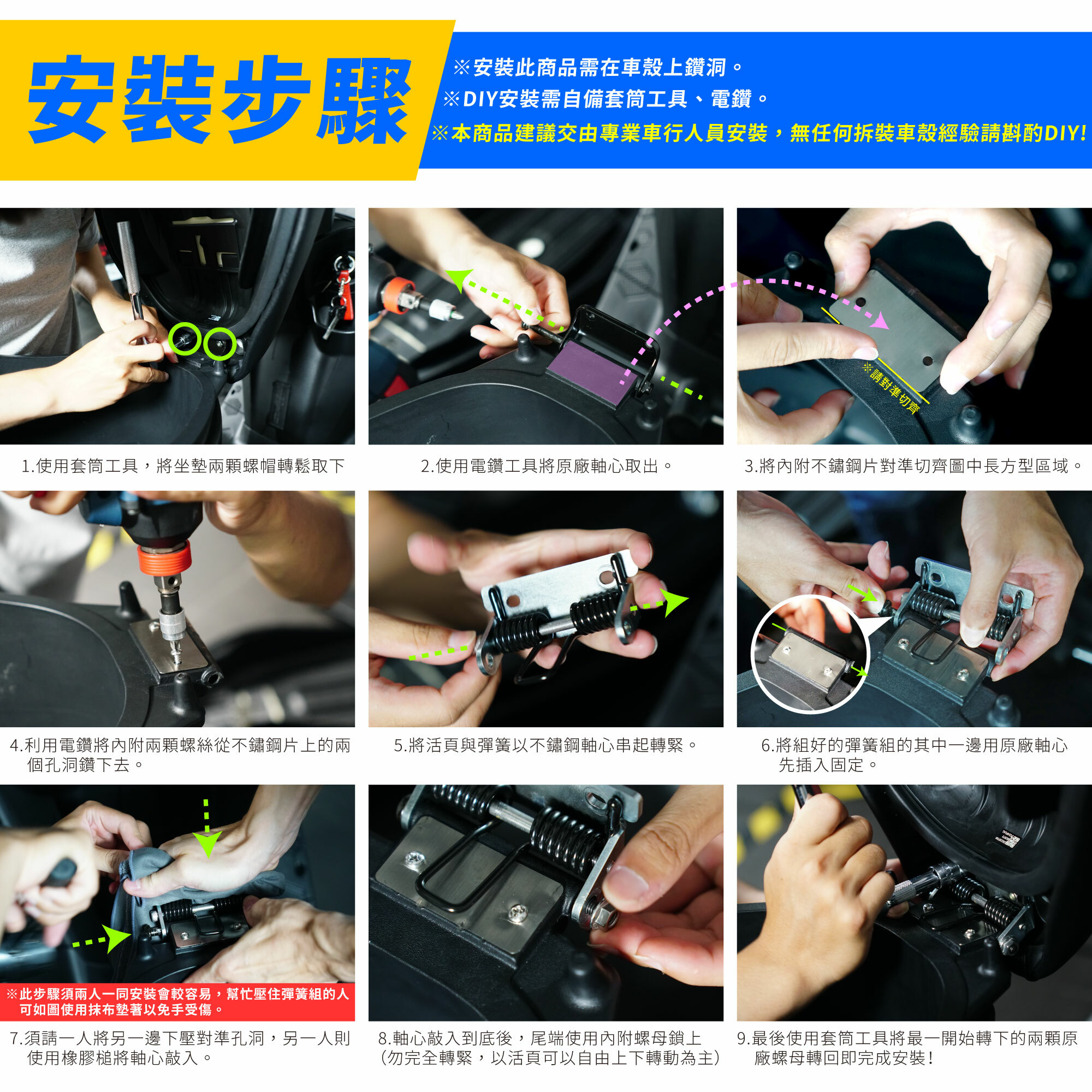 ⚠️若無拆裝車殼經驗及工具,建議自費交由專業車行安裝以免損壞愛車。