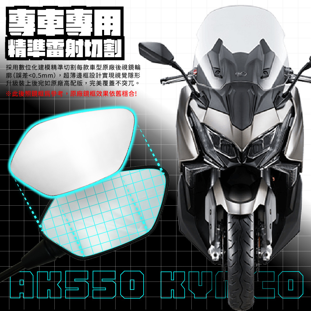 專為 KYMCO AK550 設計的超視野廣角後照鏡,有效擴大後方視角,提升行車安全性。鏡面採防眩處理,減少夜間與強光干擾。可調整角度設計,搭配穩固防震支架,長途騎乘穩定可靠,是通勤與旅遊騎士必備升級配件。