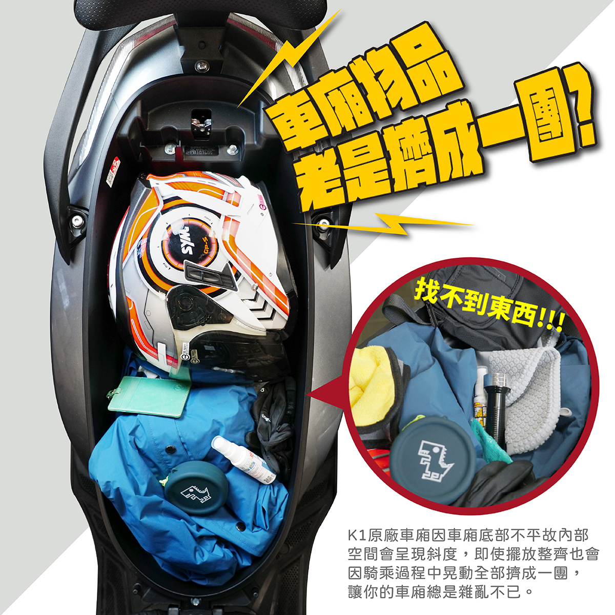 KYMCO K1 125 鋁合金車廂分隔擋板是專為 K1 125 設計的高品質配件,主要用來將車廂內部空間進行有效分隔,提升儲物空間的整潔性和組織性。採用輕量化鋁合金材質,具備耐用、抗腐蝕的特性,不僅能承受日常使用中的磨損,還能有效減少車廂內物品的碰撞損害。安裝簡便,設計與 K1 125 車型完美匹配,增強車主對車廂內物品的管理與保護,提升整體使用體驗。