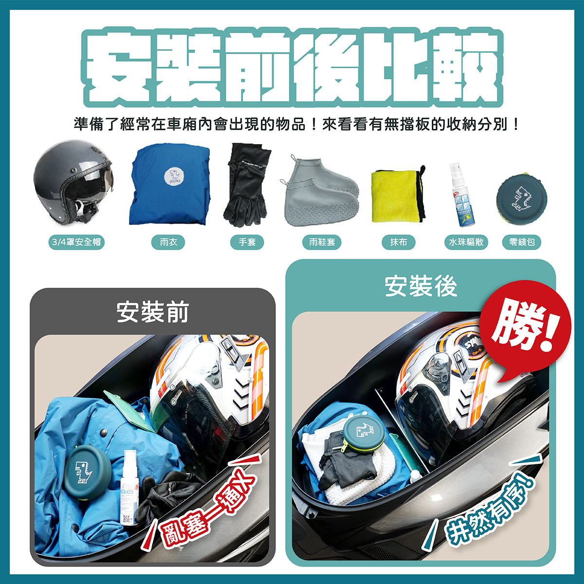 🏆可放入3/4安全帽不卡卡,還可以分類物品、包包!