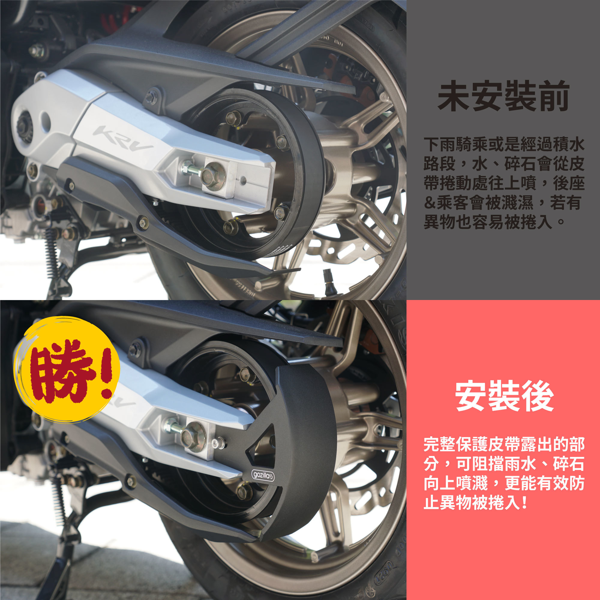 你知道雨水、小碎石會經由KRV的皮帶處向上噴濺嗎?別讓後座乘客氣PUPU😡😡😡
