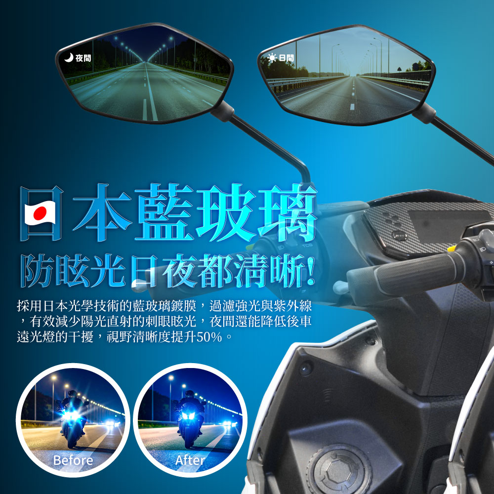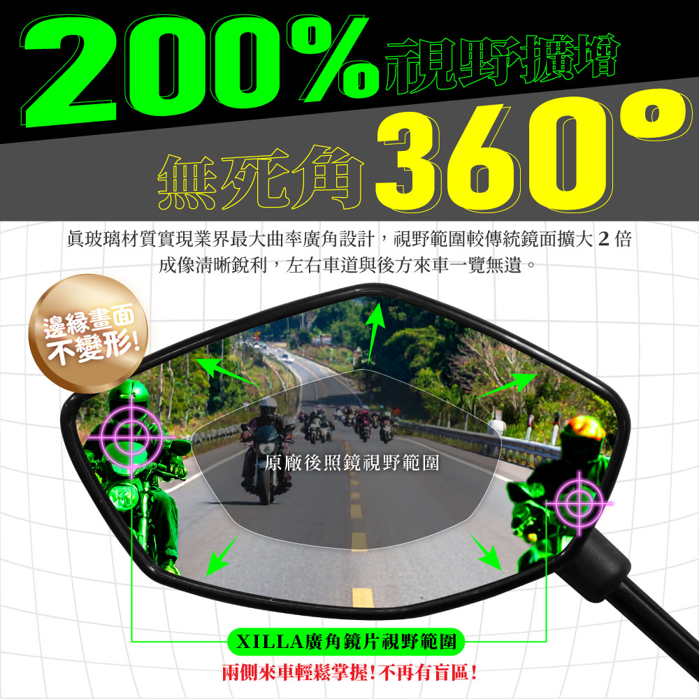 ●鏡片主要以凸面廣角來增大視野範圍,同時也會使鏡中的物體看起來比原本的更小,安裝後可能需重新適應後方來車的距離,初期請小心騎乘以避免交通事故。