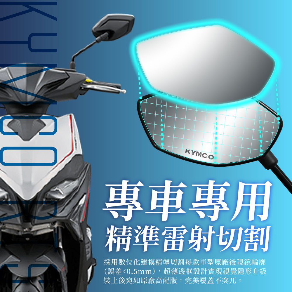 專為KYMCO RTS 165/135/125 設計!本廣角後照鏡貼片採用真玻璃製成,畫面清晰不變形,視野擴大 200% 有效減少盲區,搭配防眩光鍍膜,白天不刺眼、夜間不怕遠光燈干擾。奈米膠強力貼合、無痕不傷鏡面,耐熱耐冷不脫落,安裝快速免工具,是 KYMCO RTS 165/135/125車主必備的行車安全升級配件!