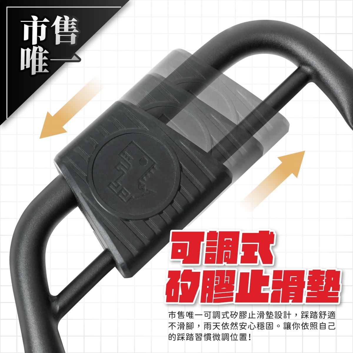 🏆 市售唯一可調式矽膠止滑墊,踩踏舒適不卡腳,角度位置可微調,腳感更升級
