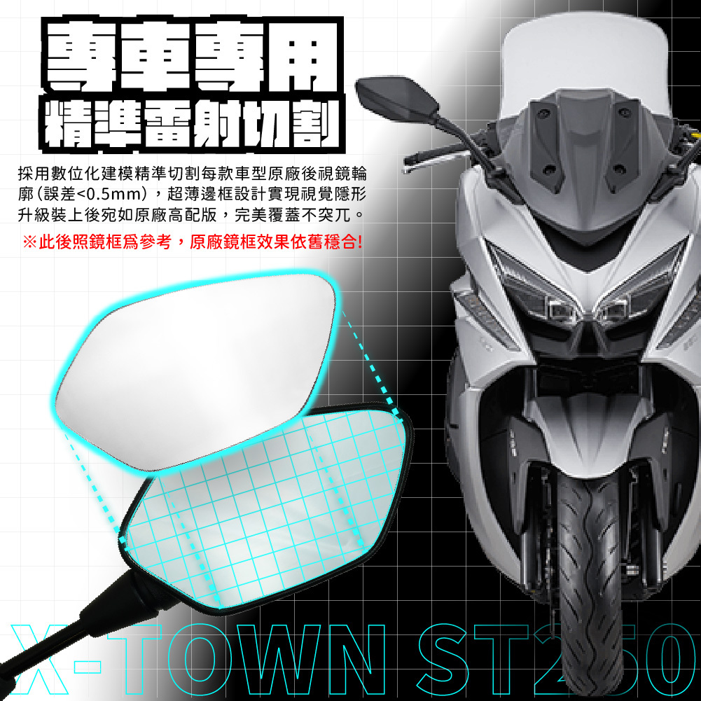 專為X-TOWN ST250設計的超視野廣角後照鏡,提供更寬廣的後方視角,提升騎乘安全。採防眩鏡面技術,有效減少夜間眩光干擾。鏡面角度可靈活調整,搭配穩固防震支架,安裝簡易,適合日常通勤與長途騎行,是X-TOWN ST250車主必備升級配件。