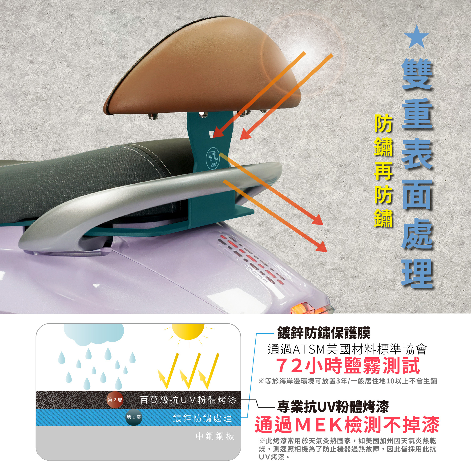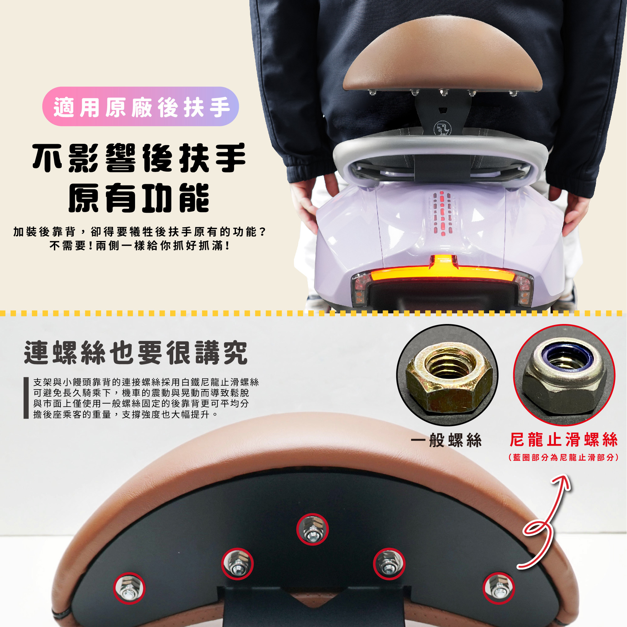 XILLA KYMCO 優格 Yogurt 125 後靠背推薦!MIT台灣製造,優質小饅頭泡棉、耐用鋼板與雙層防鏽處理,使用壽命長達10年以上。完美密合原廠後扶手與坐墊,支撐力加倍,安裝簡便,給後座滿滿安全感。支架、靠墊精密設計,穩固耐用,讓您的騎乘更舒適安心!