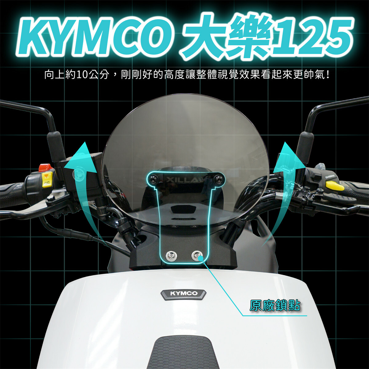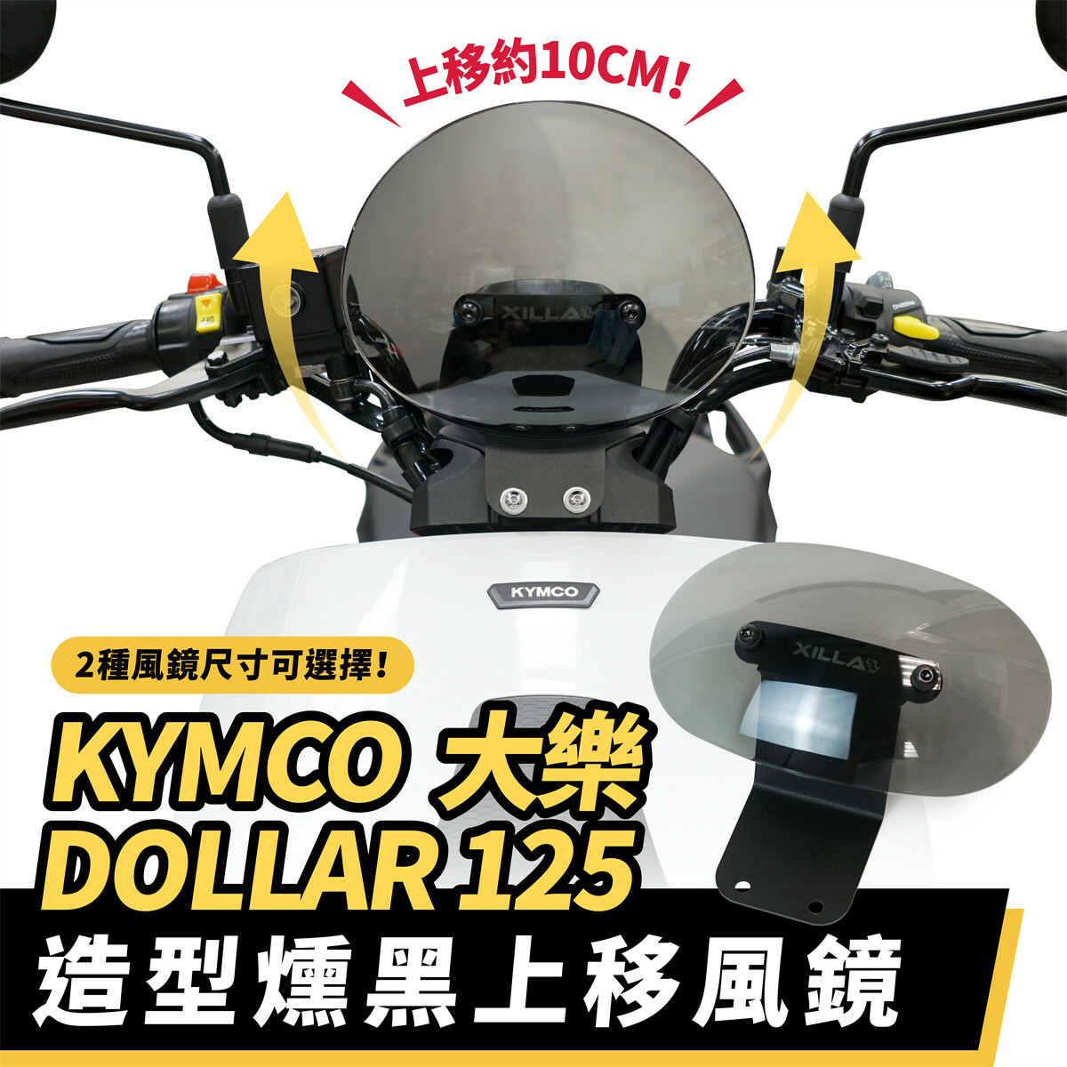 KYMCO DOLLAR 大樂 125/150 燻黑造型風鏡,專為大樂 125 和 150 車型設計,增強車輛外觀的同時提升騎乘舒適度。此風鏡採用燻黑色設計,具有現代感和運動感,能有效降低風阻,減少高速行駛時對騎士的風壓。耐用的材質確保風鏡長期使用不易損壞,並提供良好的抗紫外線保護。簡單安裝,既能提升車輛的外觀,也能增強騎行體驗,是每位大樂車主的理想配件。