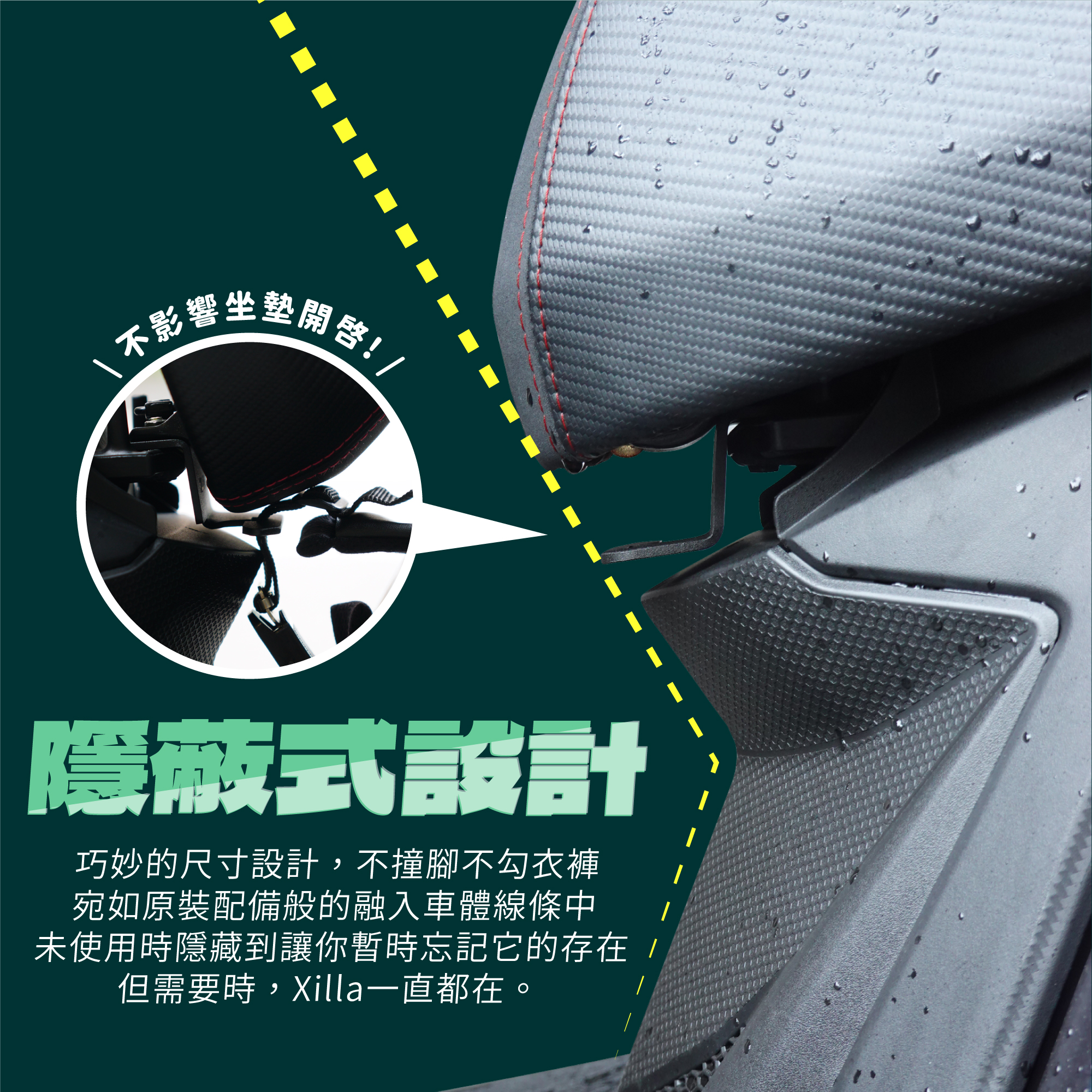 🏆隱蔽式設計,不擋腳、不勾衣褲、不影響坐墊開啟做動