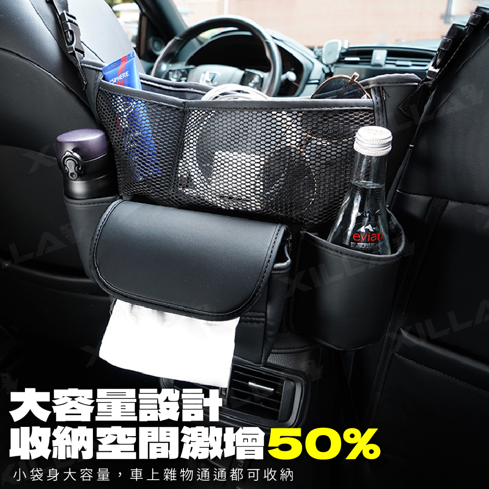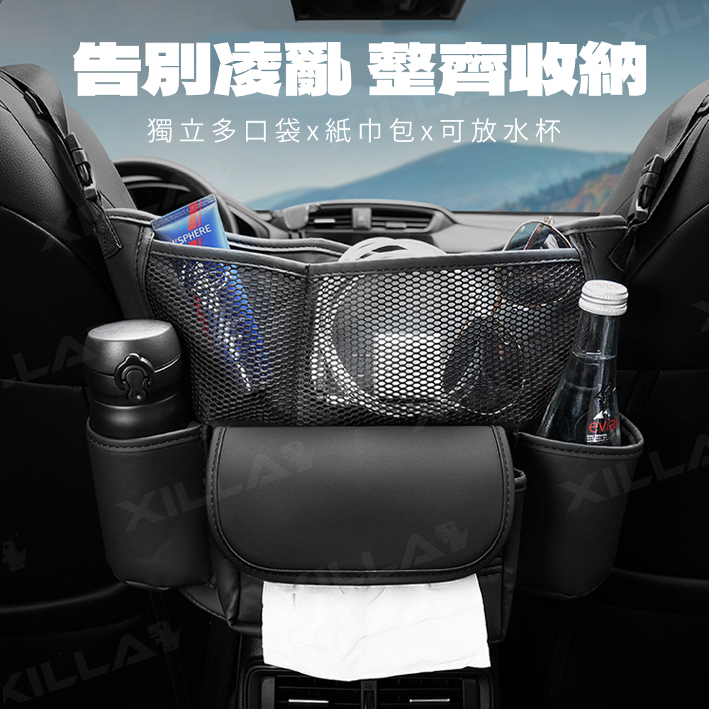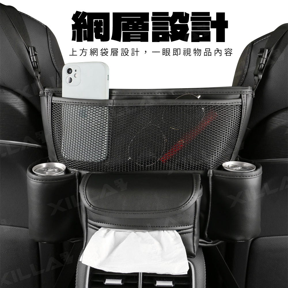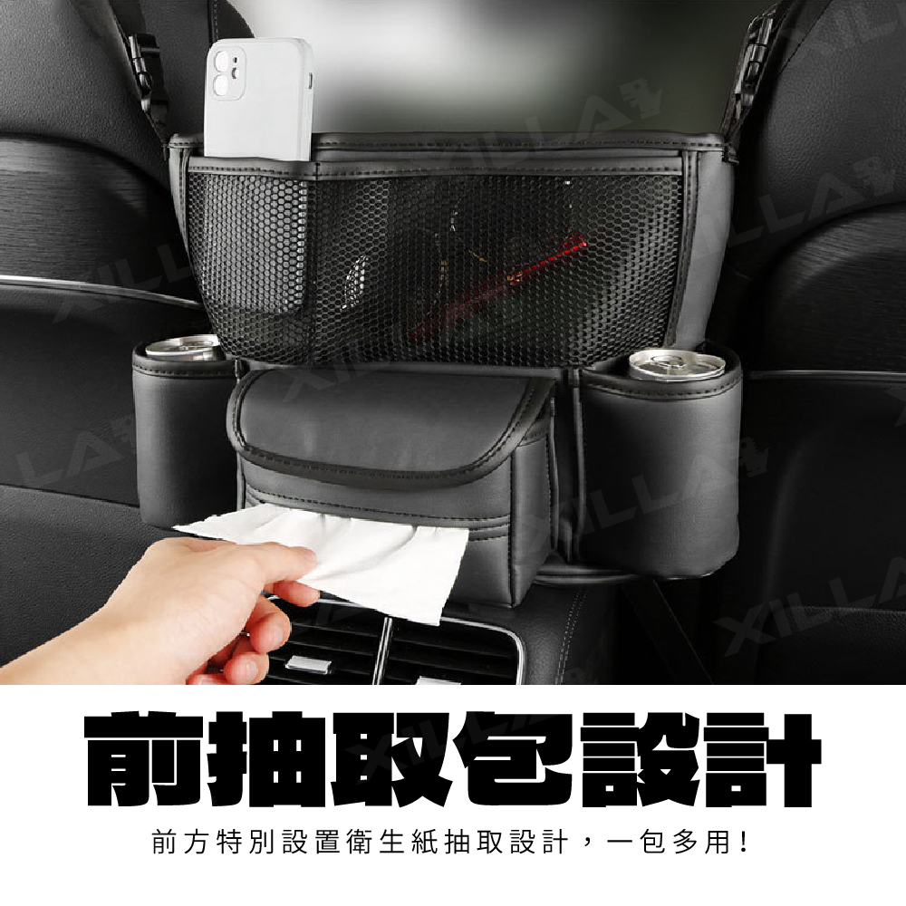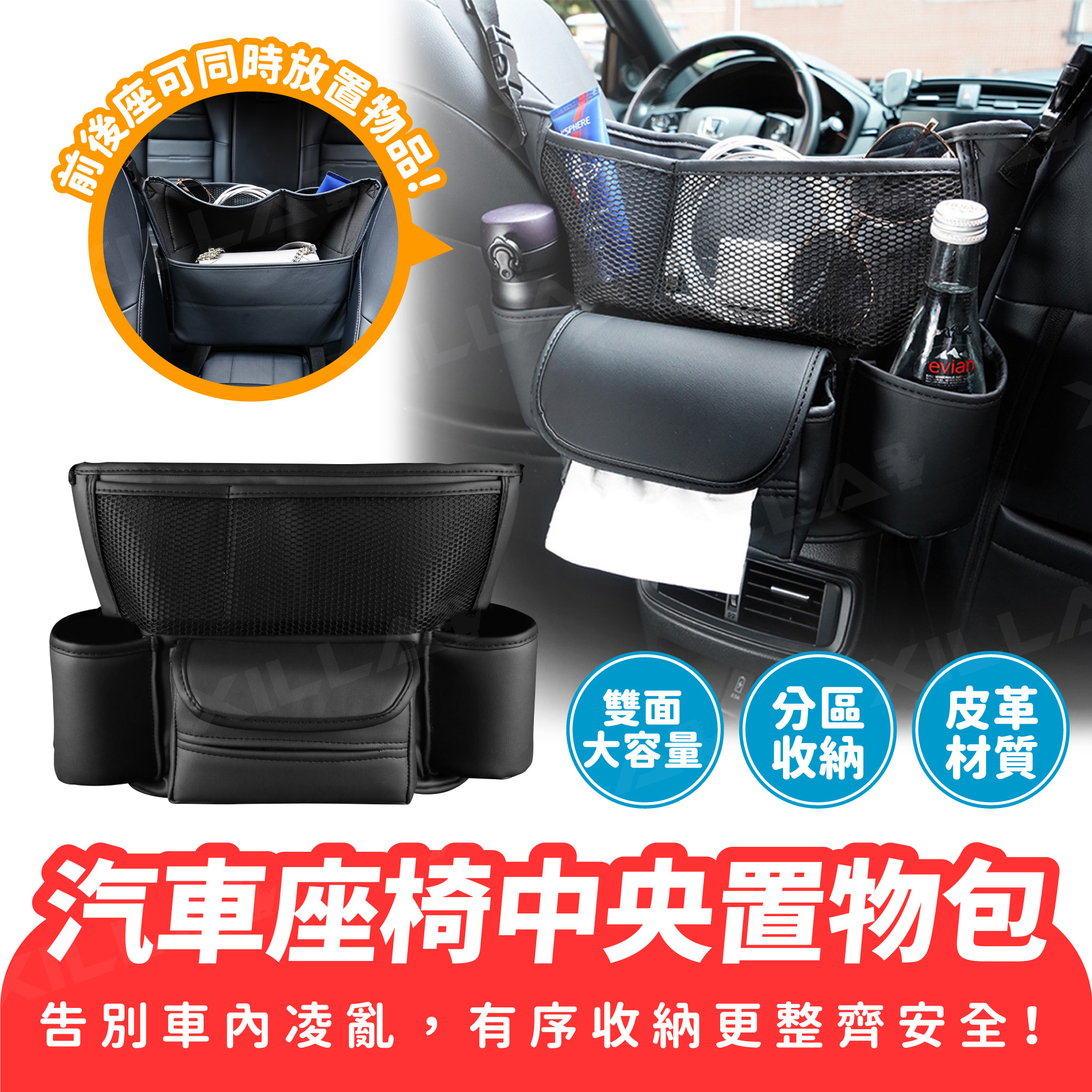汽車座椅中央置物包,讓車內空間更整潔,提供雙面超大容量收納,輕鬆收納手機、錢包、零食等物品,取用方便不佔位。採用精緻皮革材質,兼具耐用與質感,提升車內品味。內建衛生紙抽取袋,讓您隨時保持清潔,網層設計則方便分類收納小物,適用各種市售車款。安裝快速簡單,無需工具即可固定,是提升駕駛便利性的理想選擇!